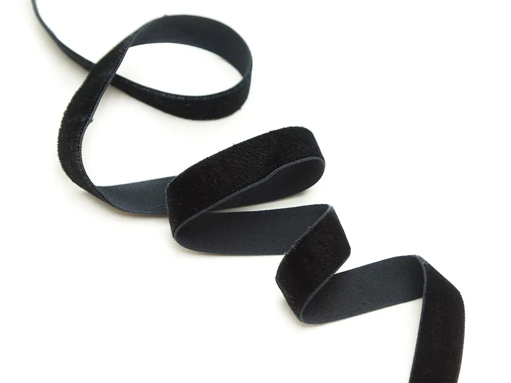 Лента бархатная стрейч, чёрного цвета, ширина 16 мм