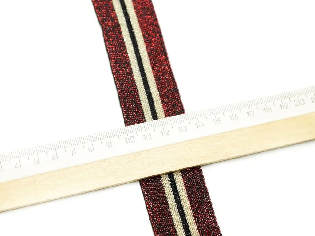 Лента лампасная, трикотажная, бордовая/золотая/чёрная полоска с люрексом, ширина 35 мм