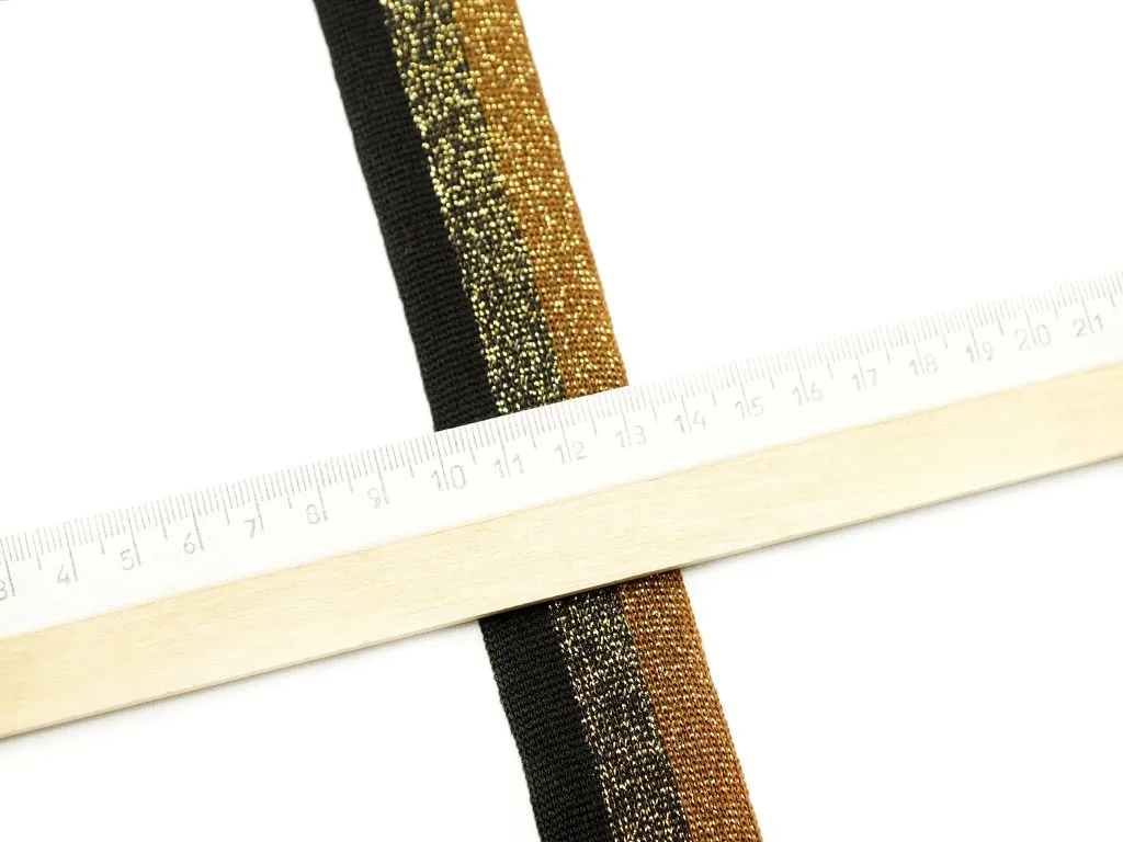 Лента лампасная, трикотажная, золотая/чёрная полоска с люрексом, ширина 32 мм