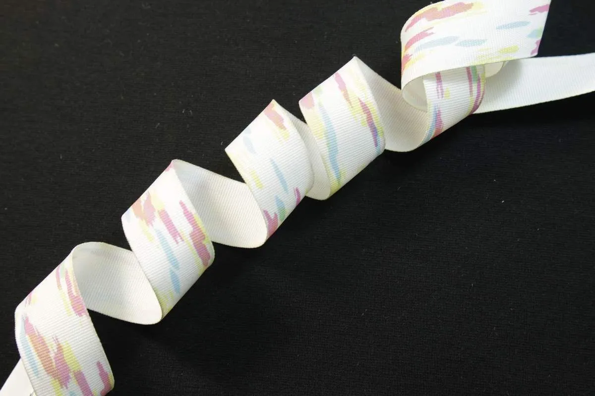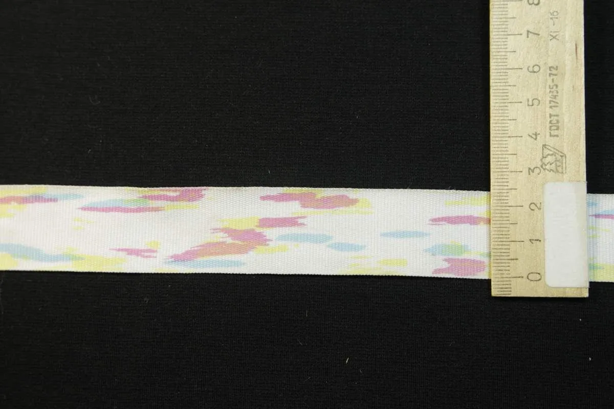 Лента репсовая декоративная, мультиколор на белом, ширина 25 мм