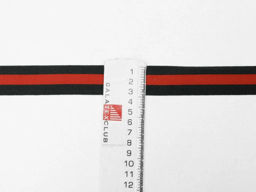 Лента репсовая, красная полоса на зелёном, ширина 30 мм