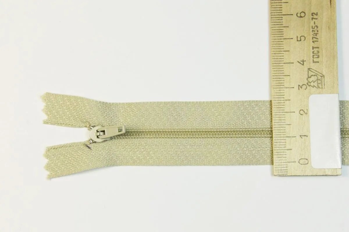 Молния брючная с металлическим замком тип 3 светло-бежевого цвета длина 25 см