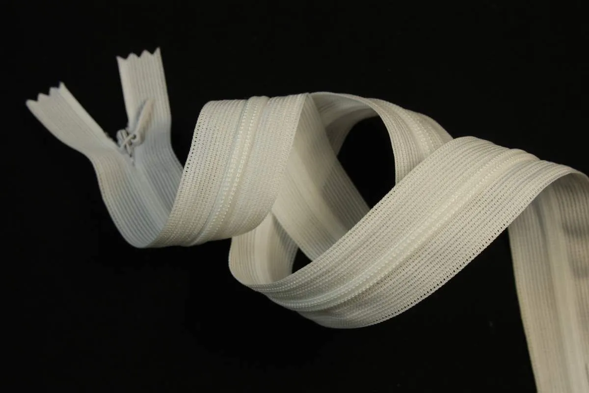 Молния потайная с металлическим замком, белого цвета, длина 55 см