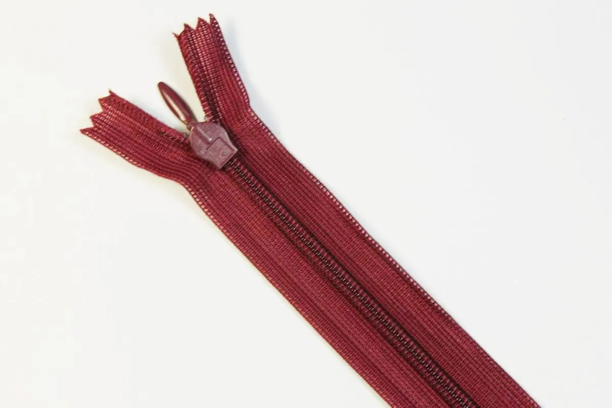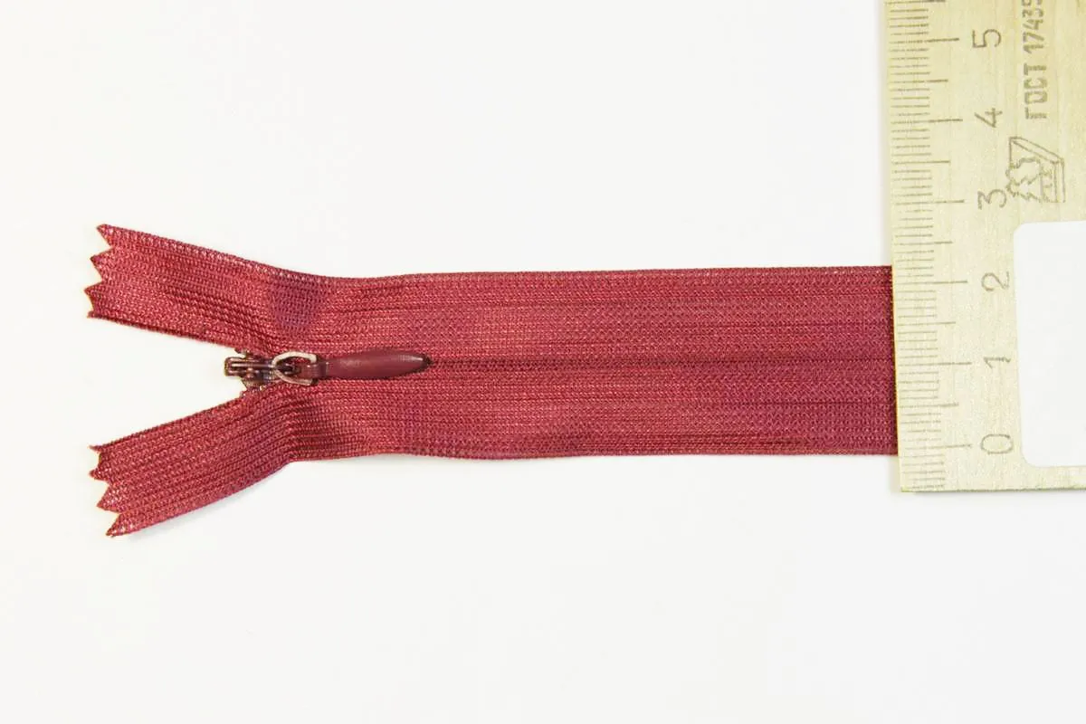 Молния потайная с металлическим замком длина 25 см цвет темно-бордовый