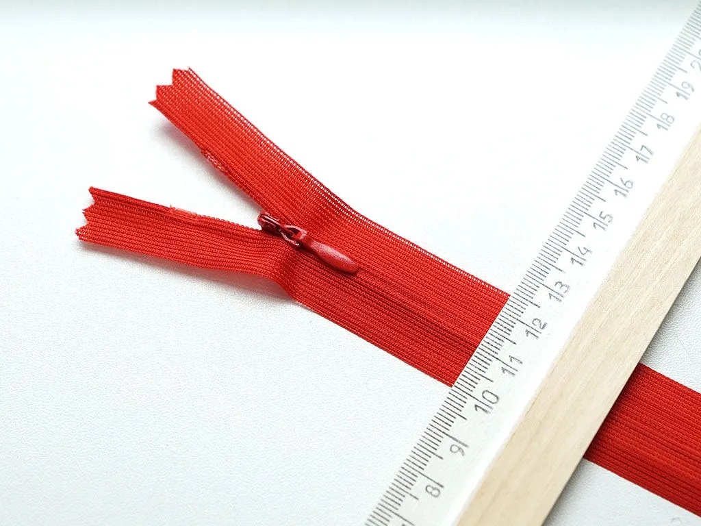 Молния потайная с металлическим замком, красного цвета, длина 20 см