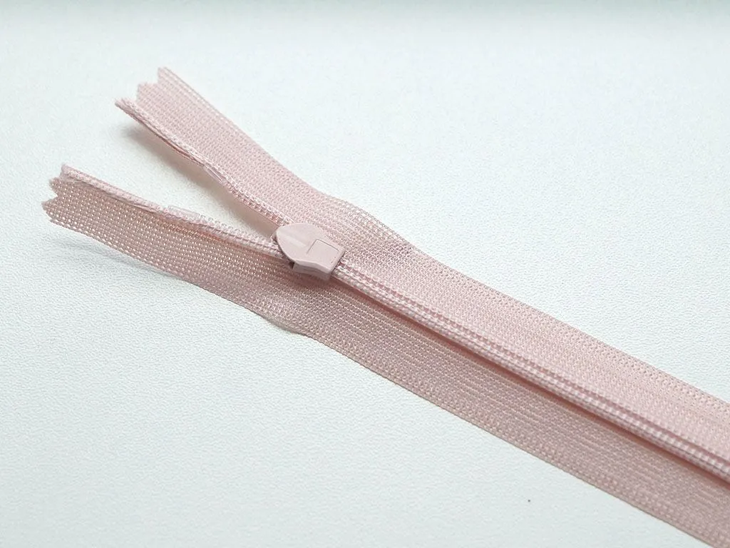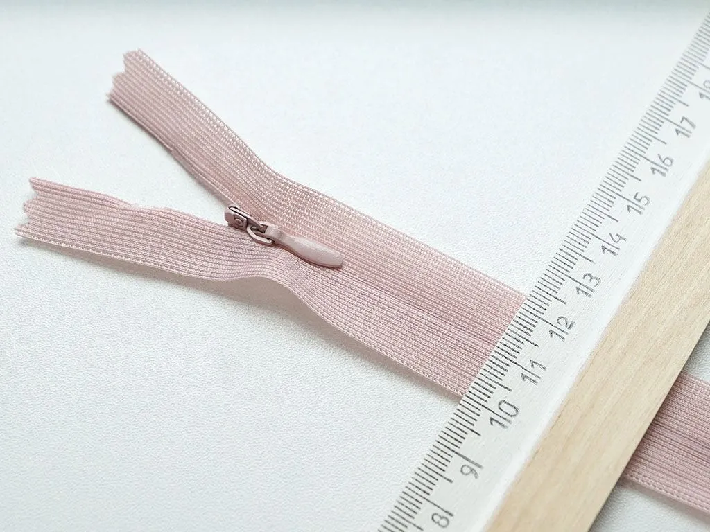 Молния потайная с металлическим замком, пыльно-розового цвета, длина 20 см