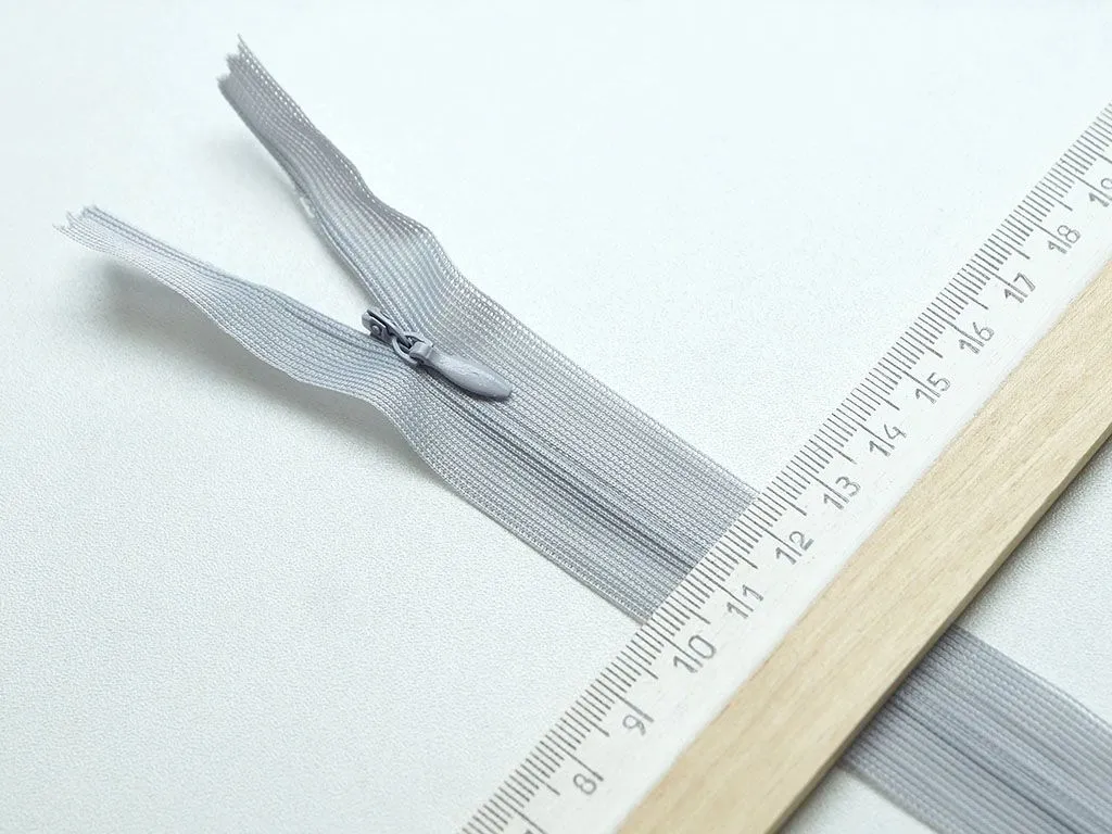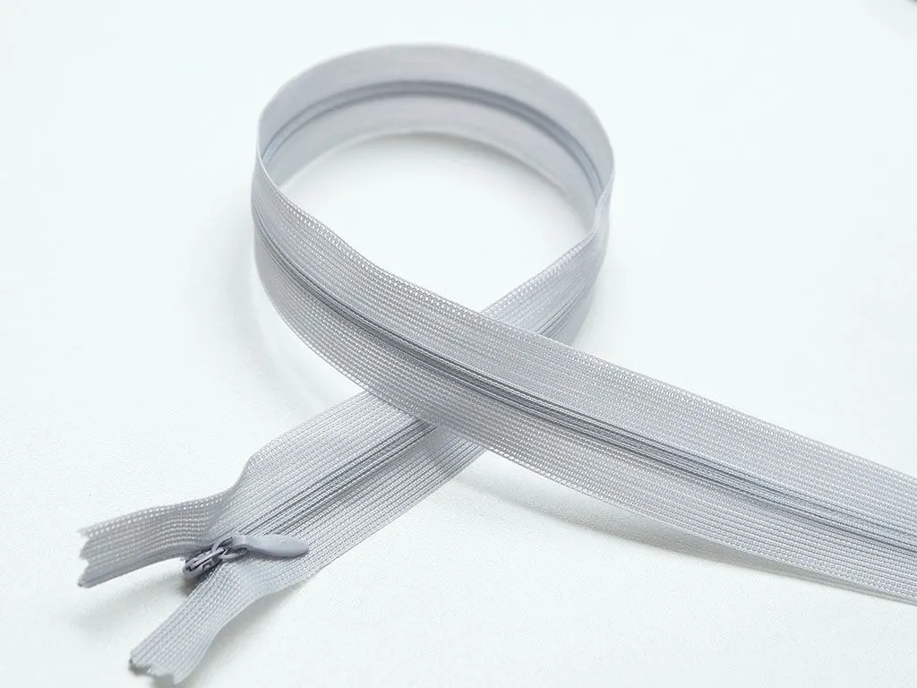 Молния потайная с металлическим замком, светло-серого цвета, длина 50 см