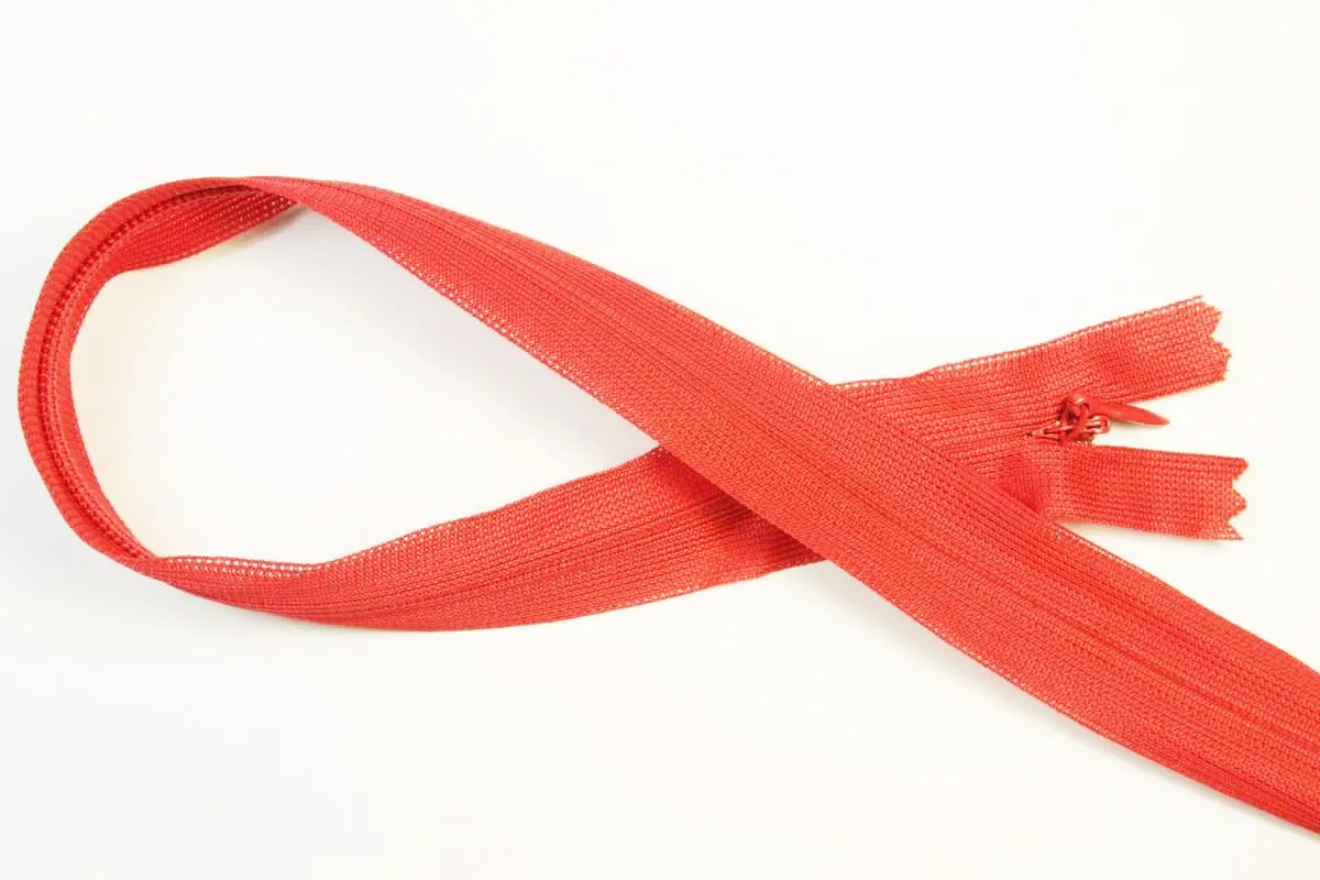 Молния потайная с металлическим замком, цвет красный, длина 50 см