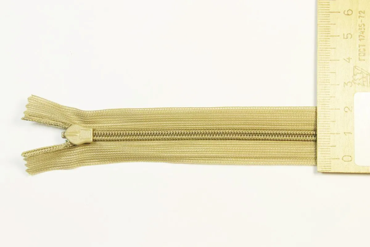 Молния потайная с металлическим замком, цвет темно-бежевый, длина 50 см