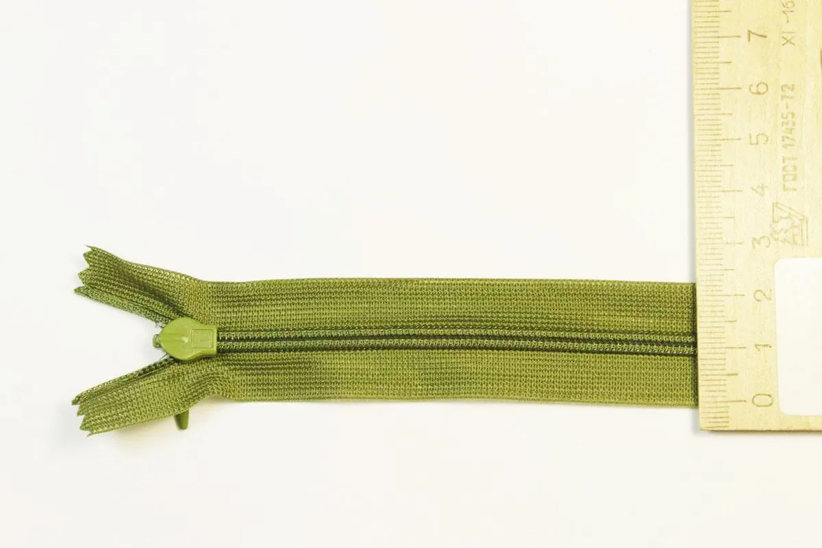 Молния потайная с металлическим замком, цвет темно-оливковый, длина 50 см