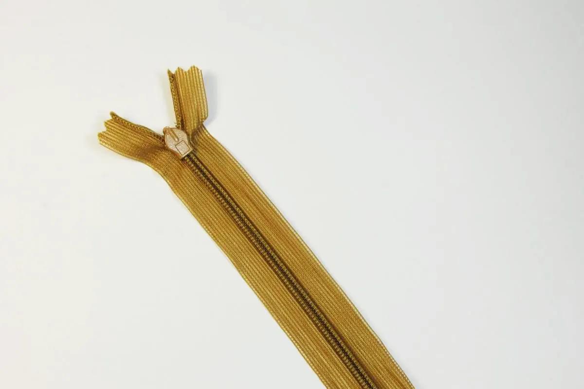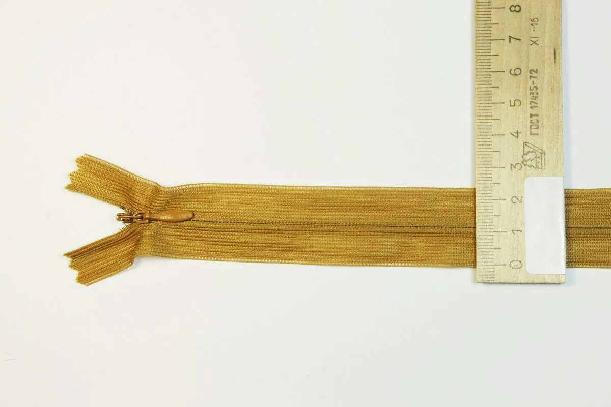 Молния потайная с металлическим замком, цвет золотисто-коричневый, длина 45 см