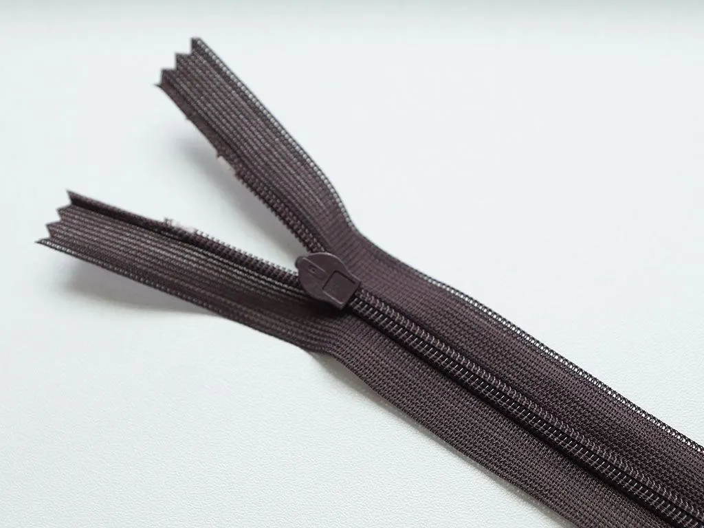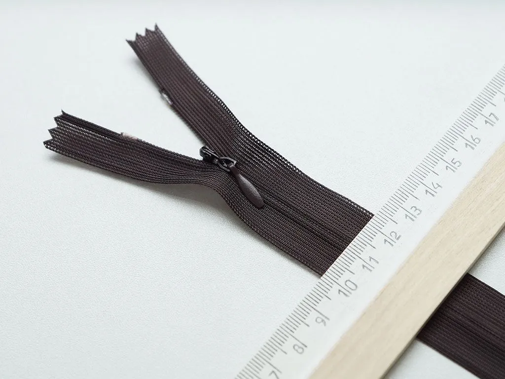 Молния потайная с металлическим замком, тёмно-коричневого цвета, длина 30 см