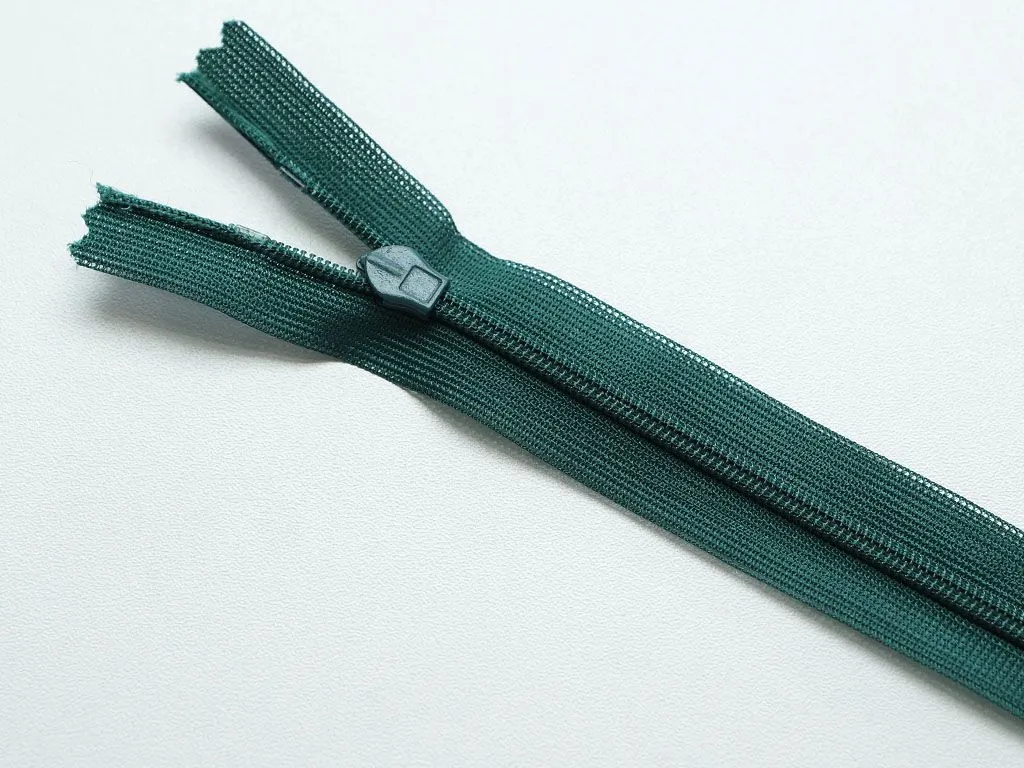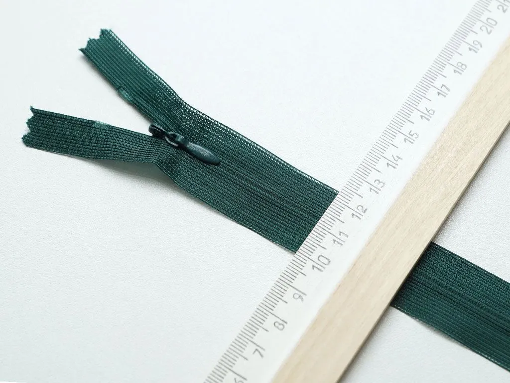 Молния потайная с металлическим замком, тёмно-зелёного цвета, длина 50 см