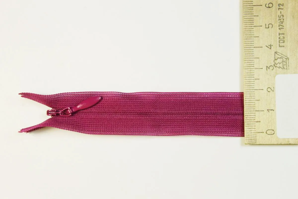 Молния потайная с металлическим замком, тёмно-розового цвета. Длина 60 см
