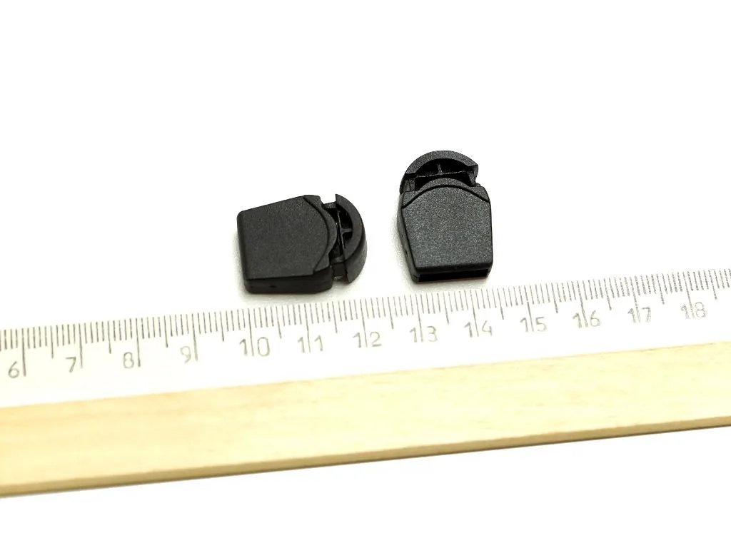 Наконечник пластмассовый для плоского шнура, чёрного цвета, размер 18*16 мм