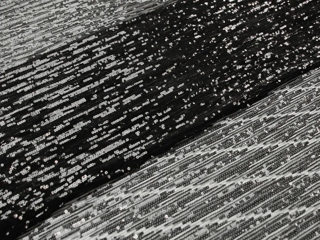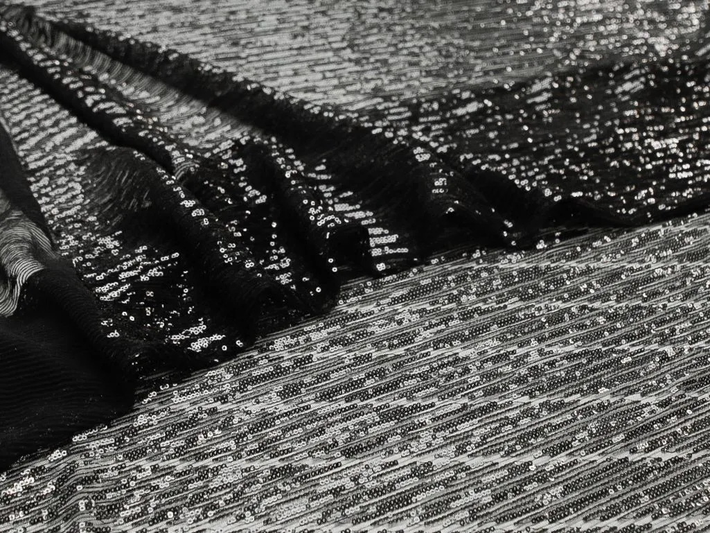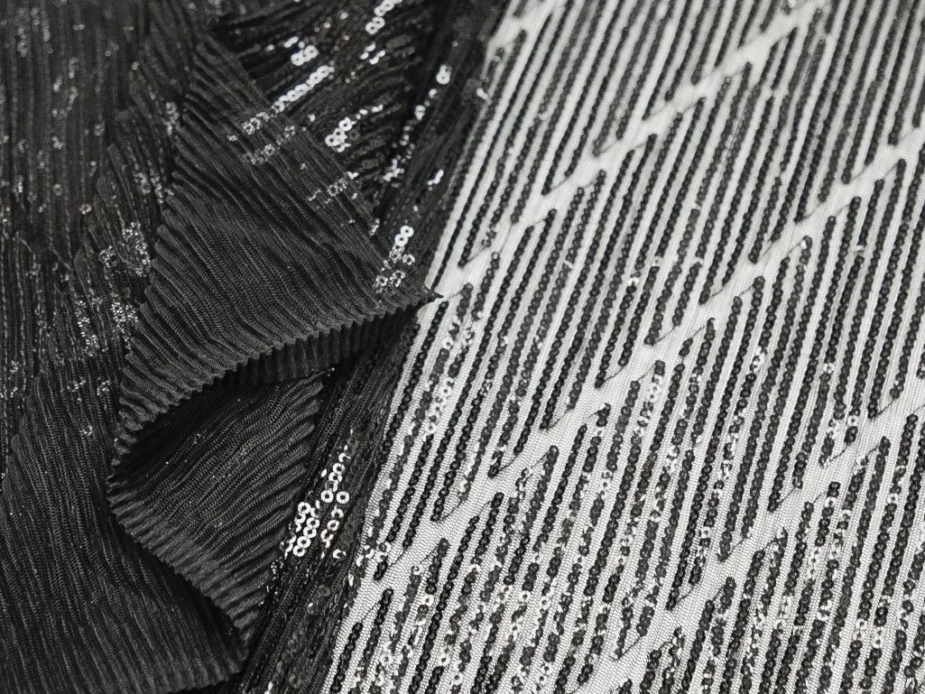 Ткань плательная с диагональным рисунком из пайеток, цвет черный