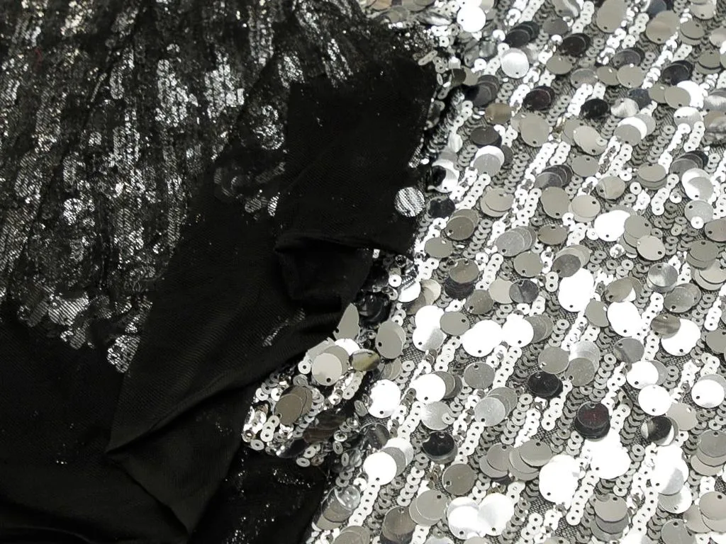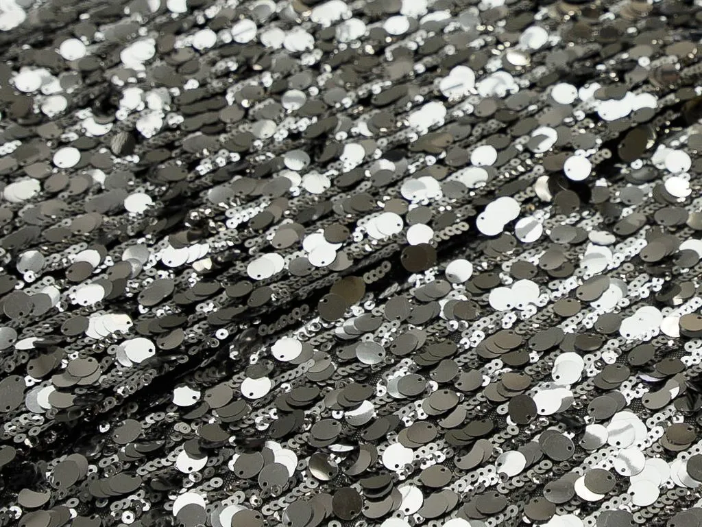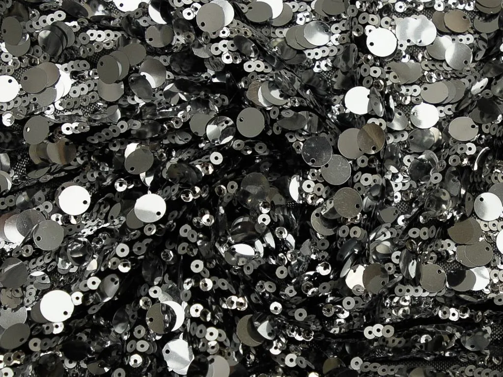 Ткань плательная с крупными пайетками на мелкой кольчуге, цвет серебристый