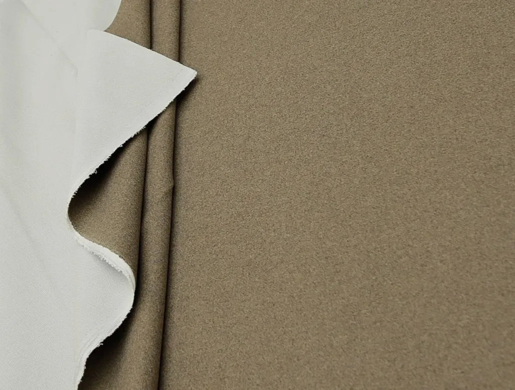 Дублированная коричнево-бежевая пальтовая ткань, с вкраплениями