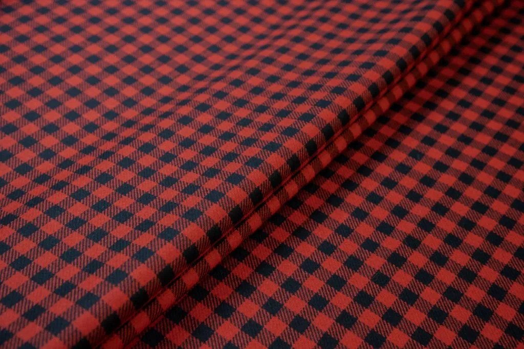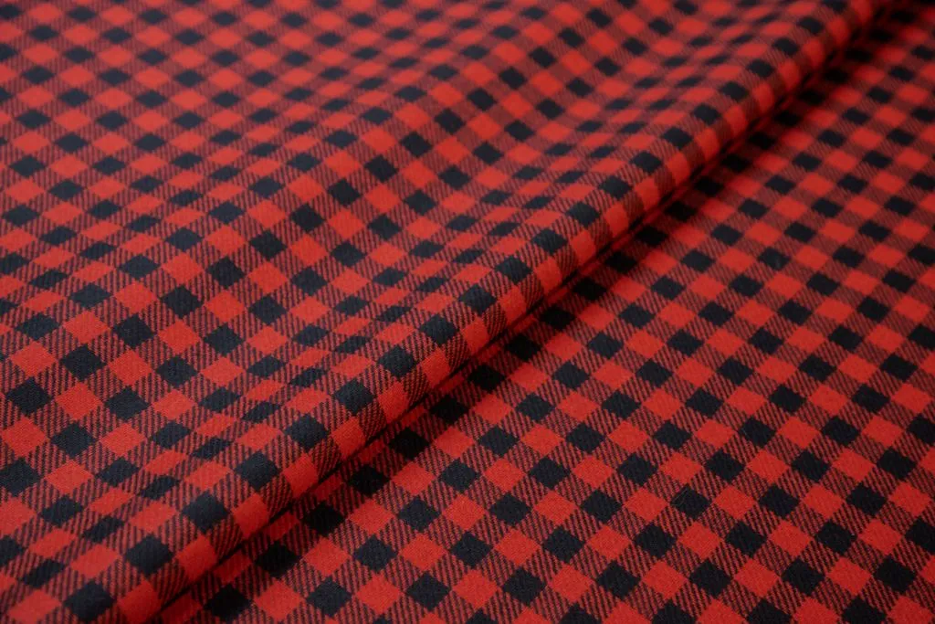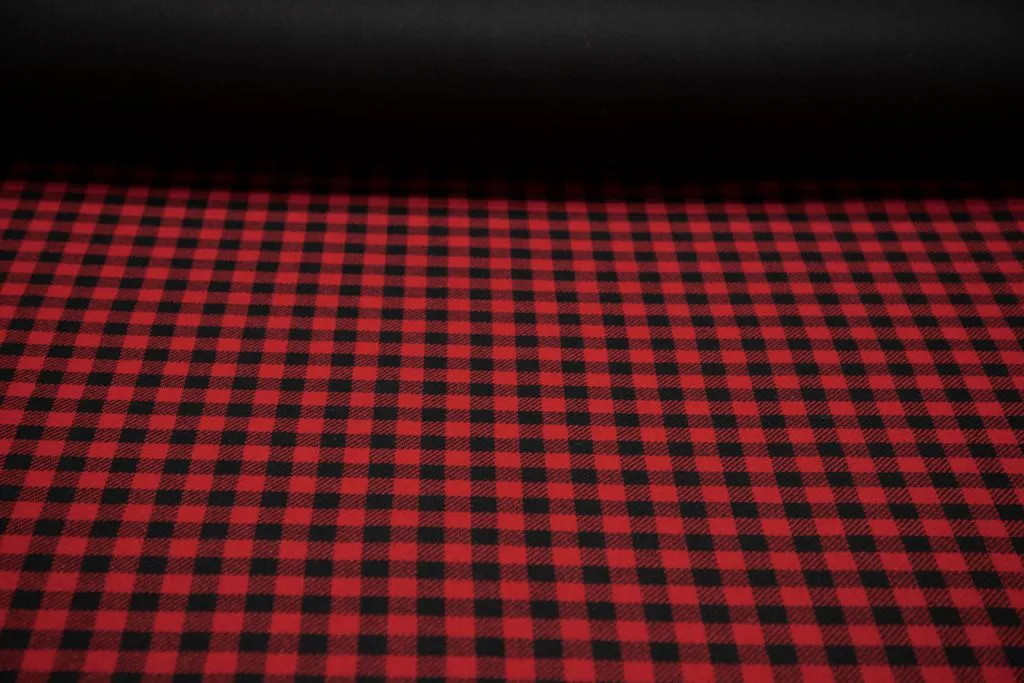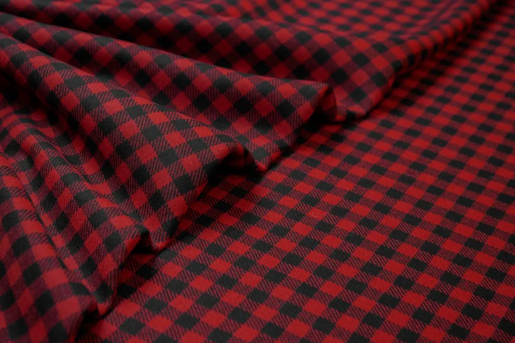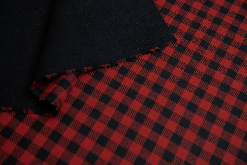 Двухслойная пальтовая ткань в клетку, красно-черный цвет