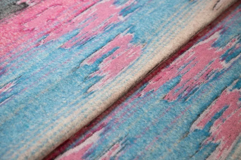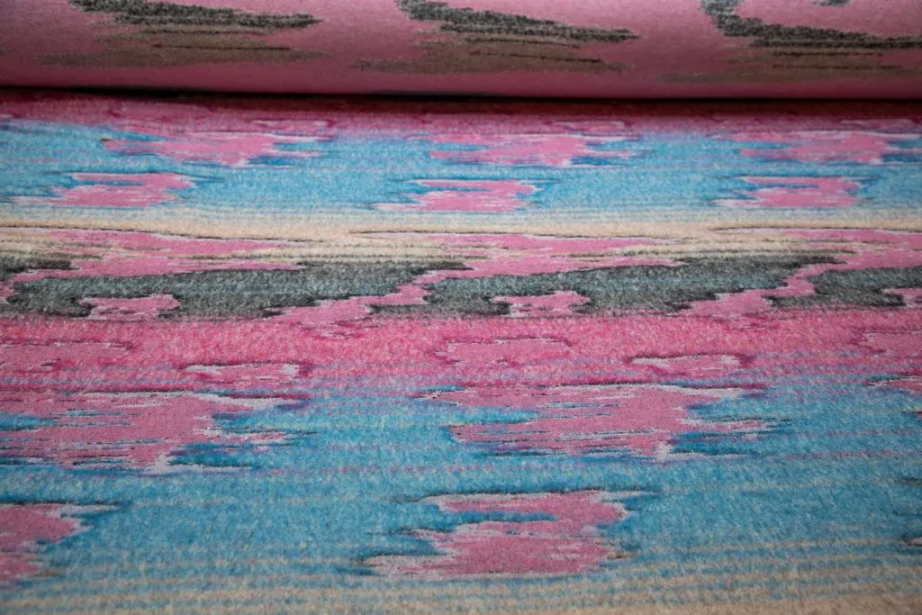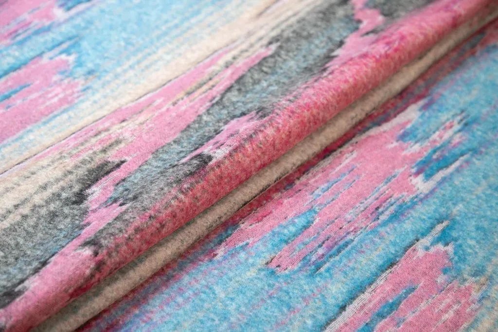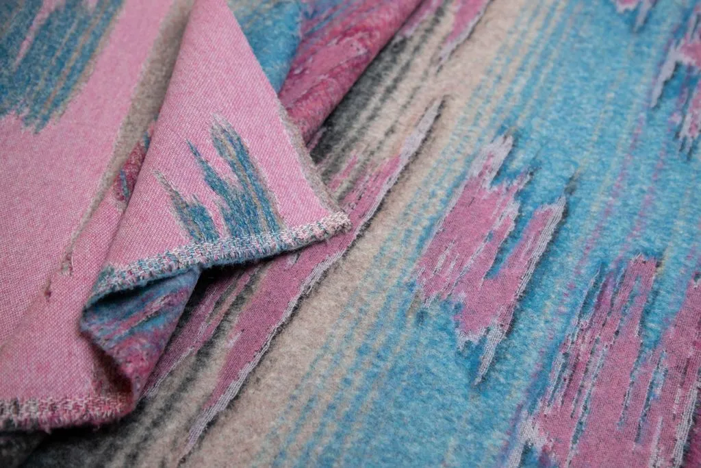 Двухсторонняя пальтовая ткань с абстрактным рисунком, цвет розово-голубой
