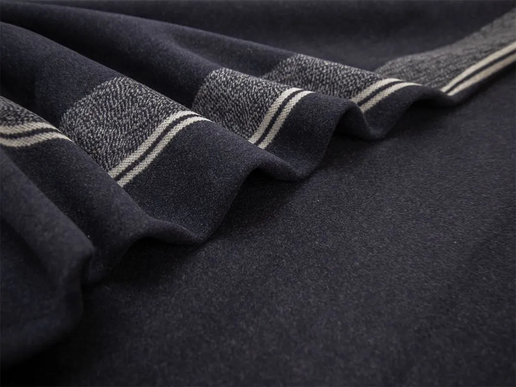 Пальтовая ткань двухсторонняя с горизонтальной полоской, купон 120 см, цвет сине-серый