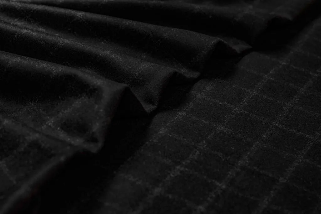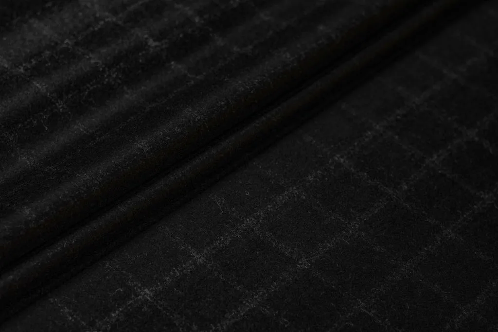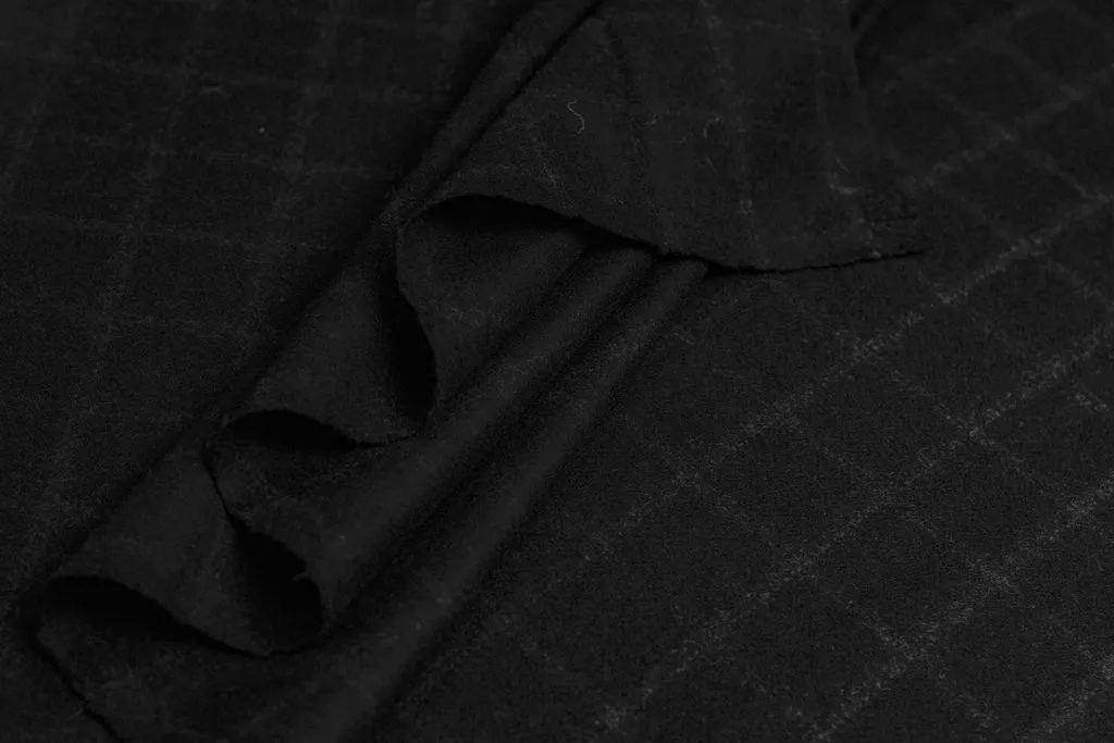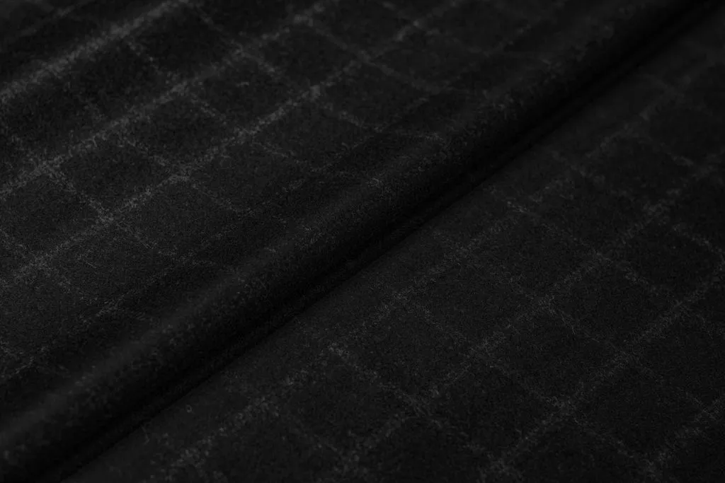 Пальтовая ткань двухсторонняя в клетку, цвет черно-серый