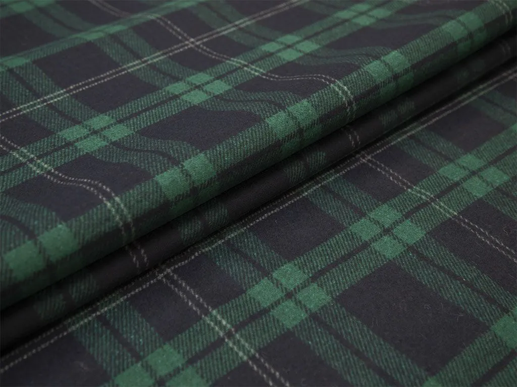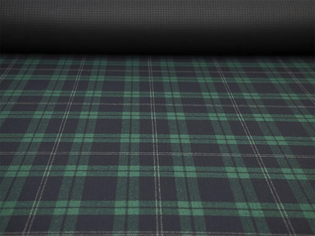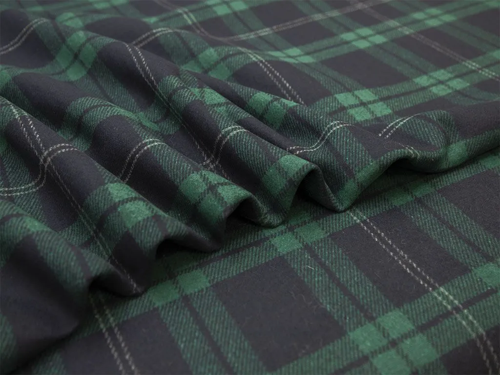 Пальтовая ткань в крупную клетку с водоотталкивающей пропиткой, цвет зелено-черный