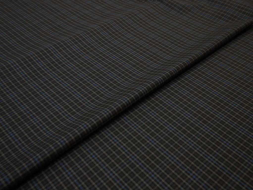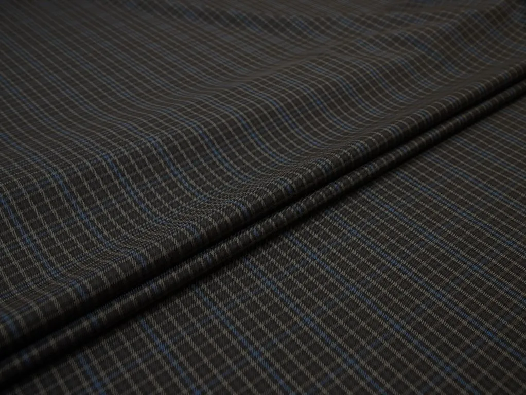 Плащевая ткань на тренч, в мелкую клетку, цвет сине-серый