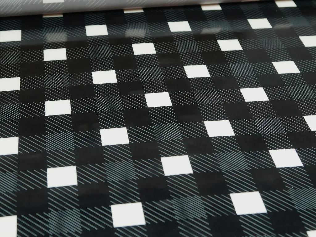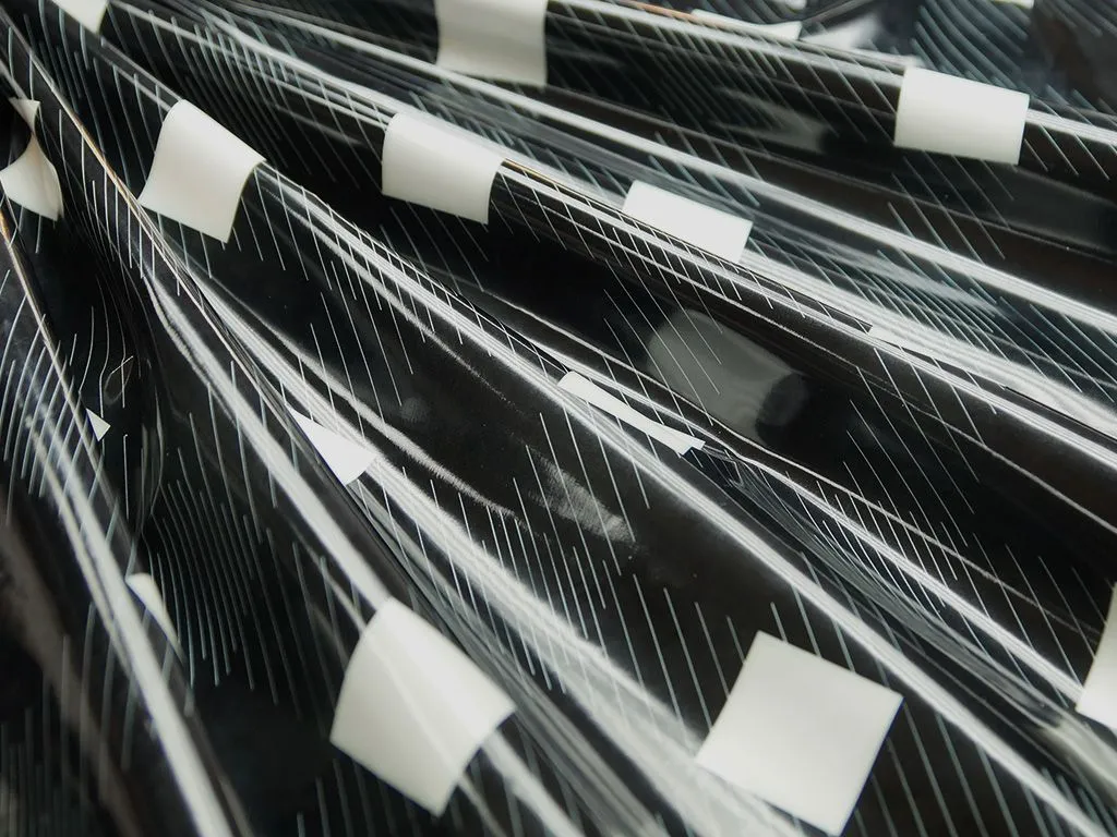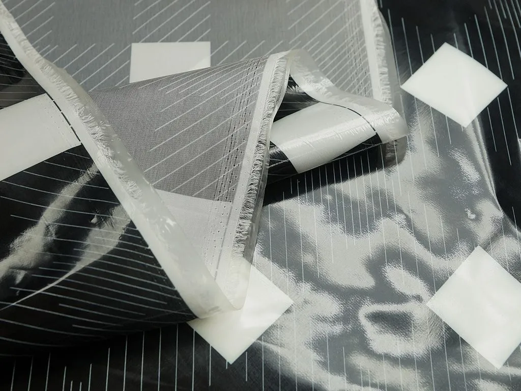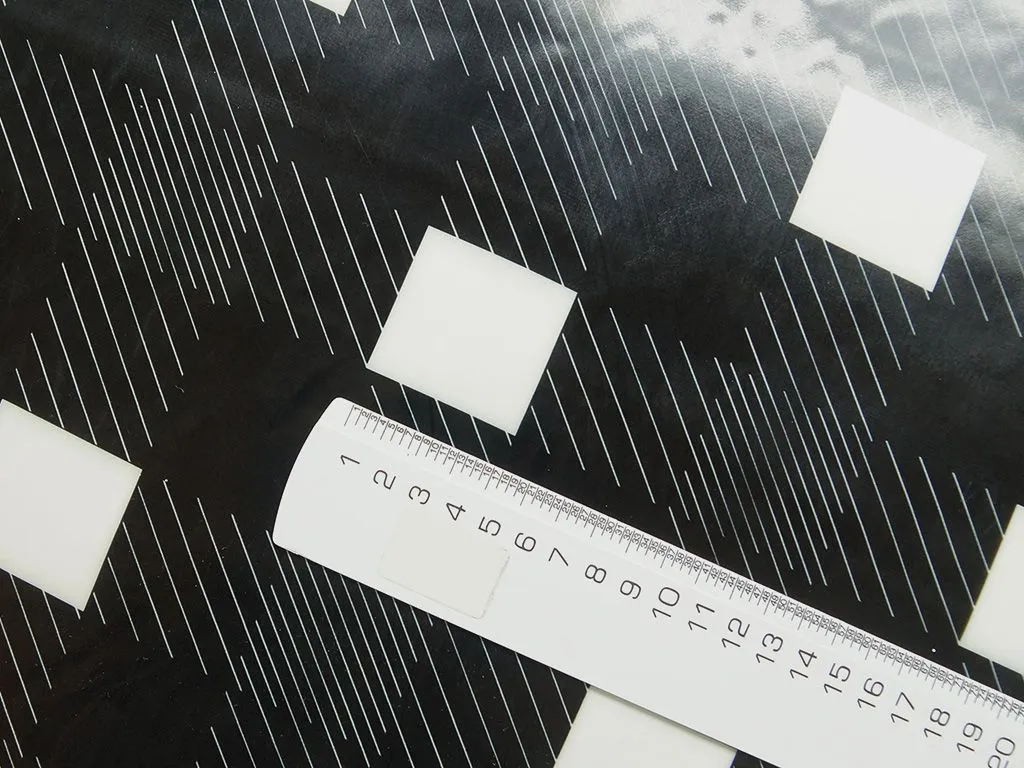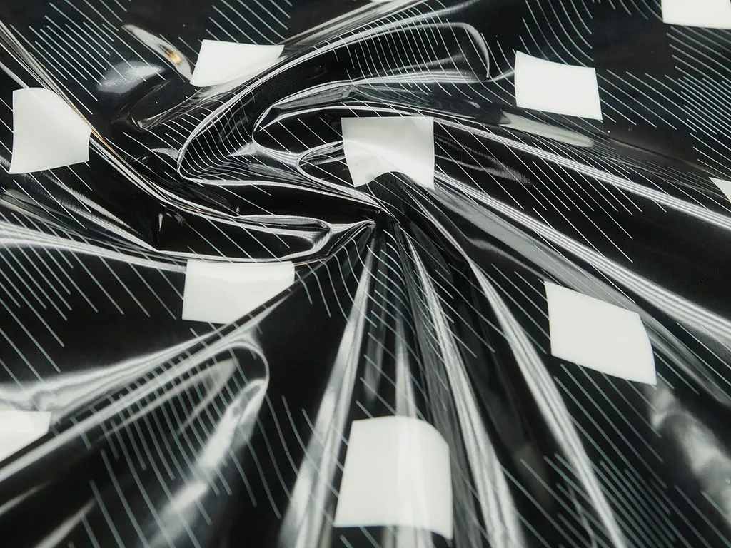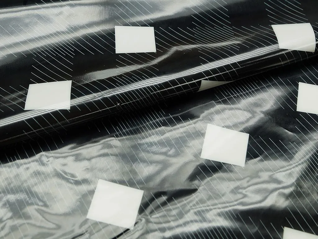 Плащевая ткань с лаковой поверхностью и геометрическим принтом