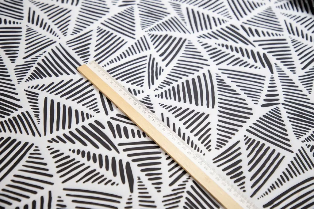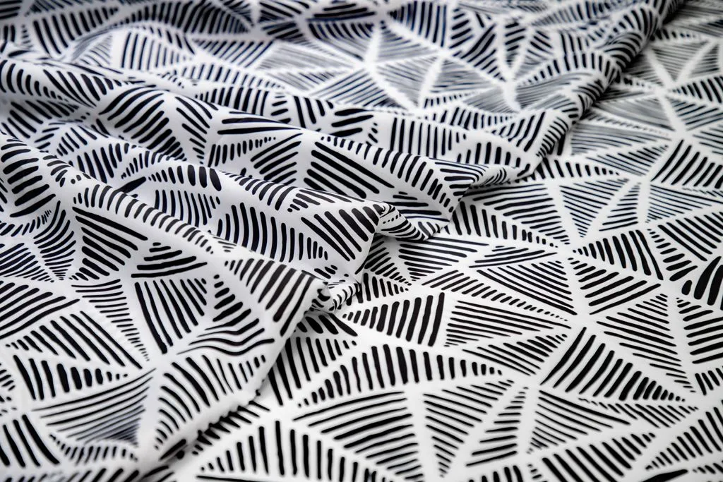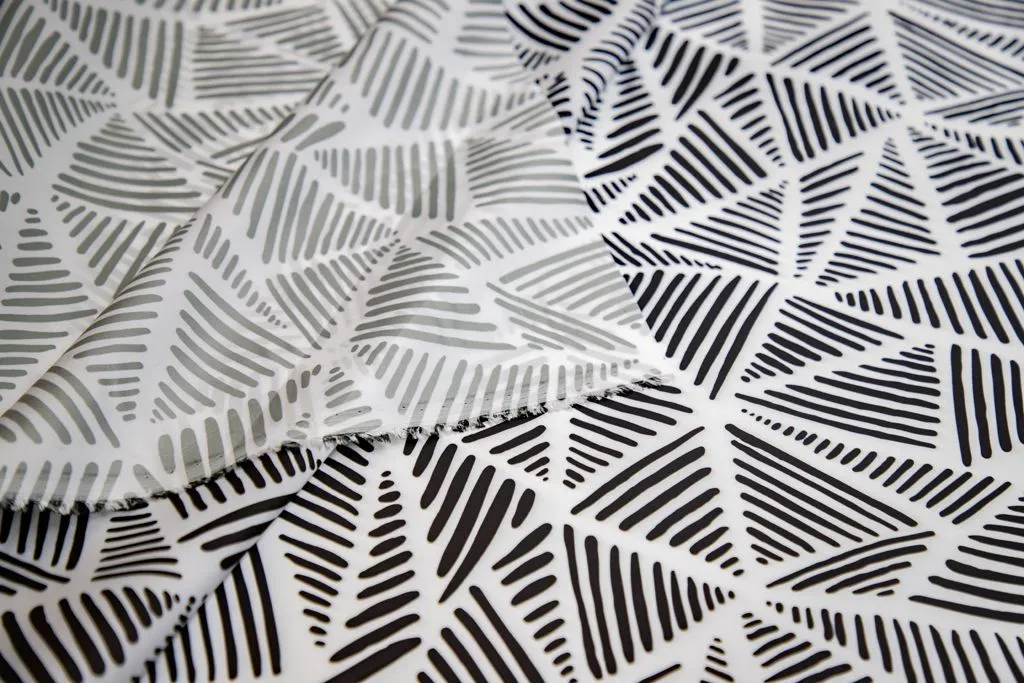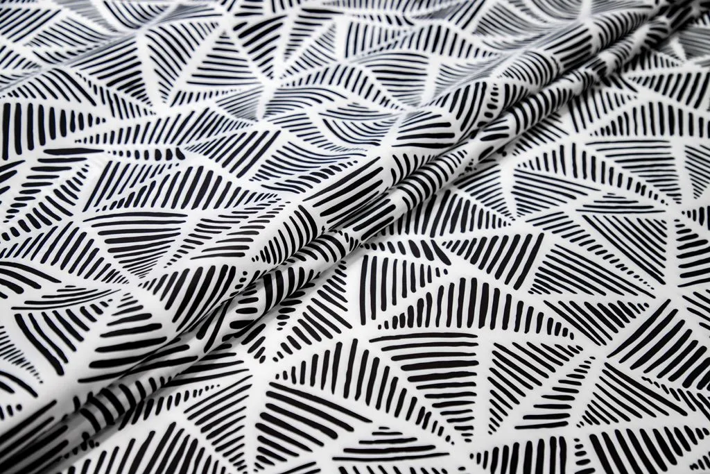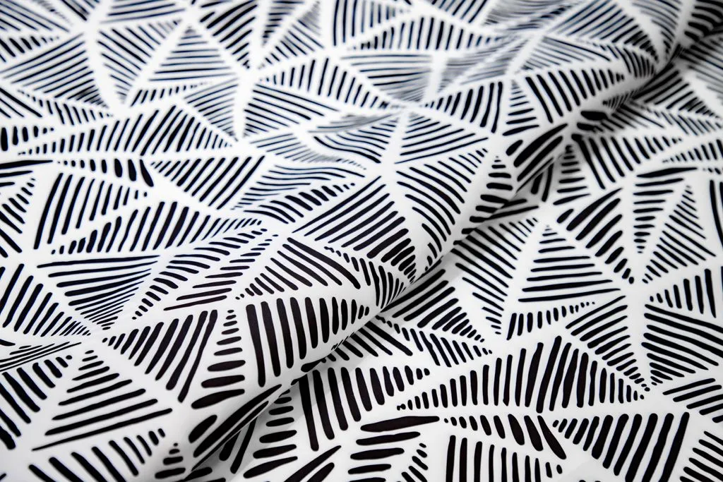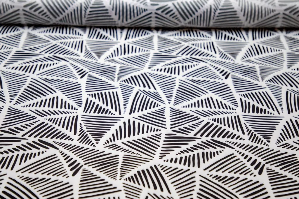 Ткань плащевая с пропиткой, рисунок "абстрактные треугольники", цвет черный-белый
