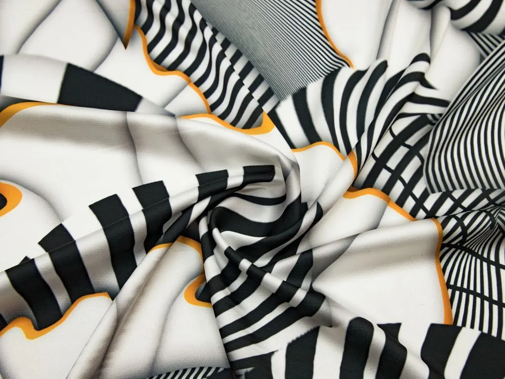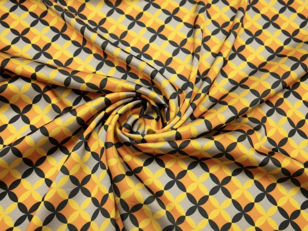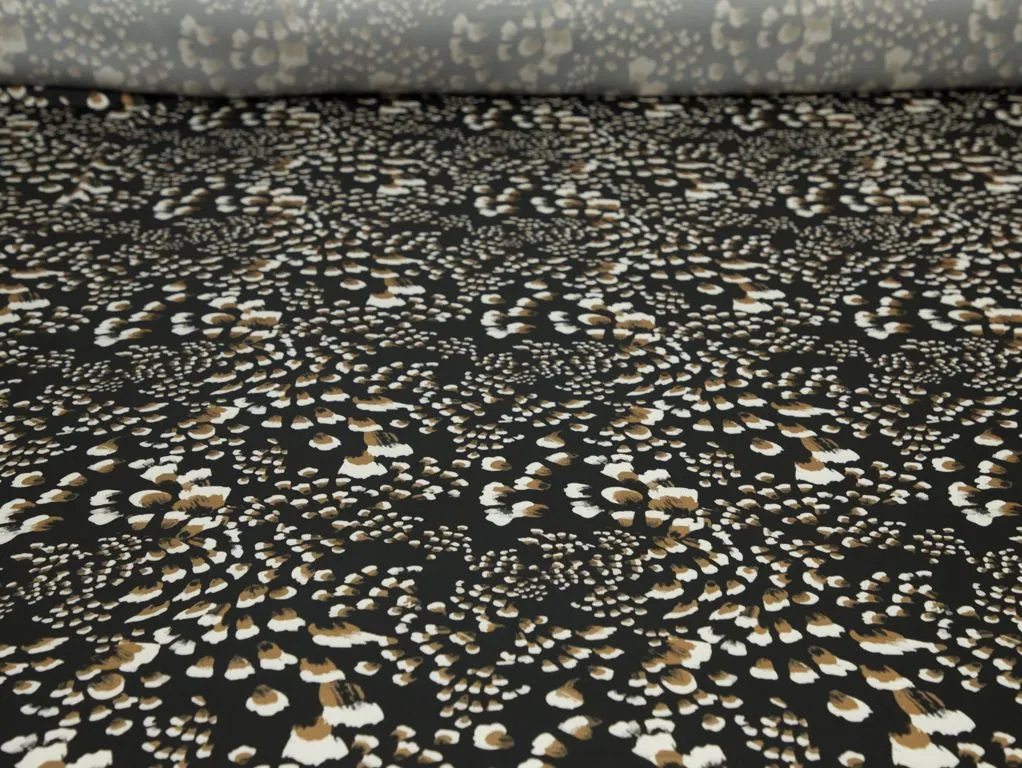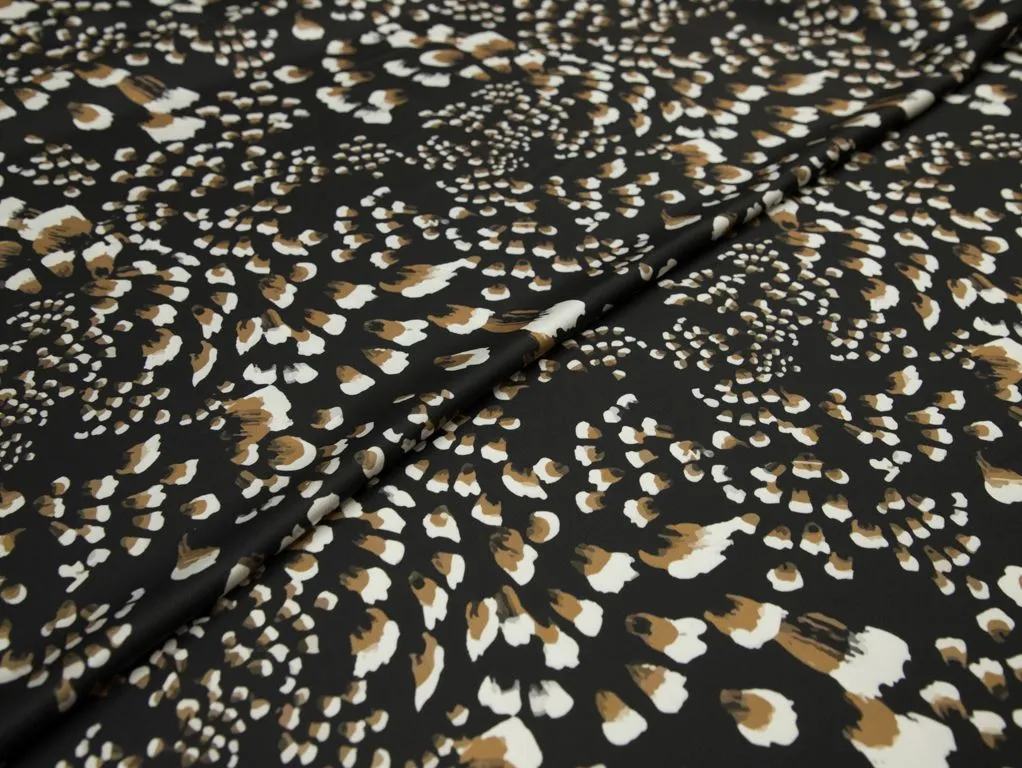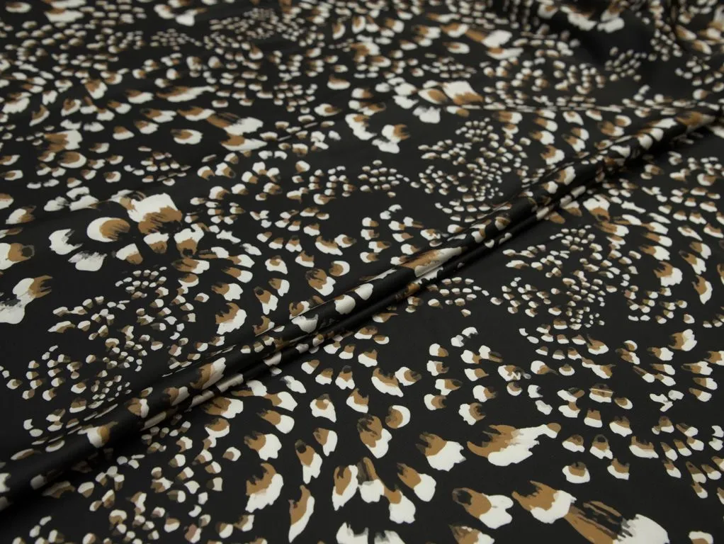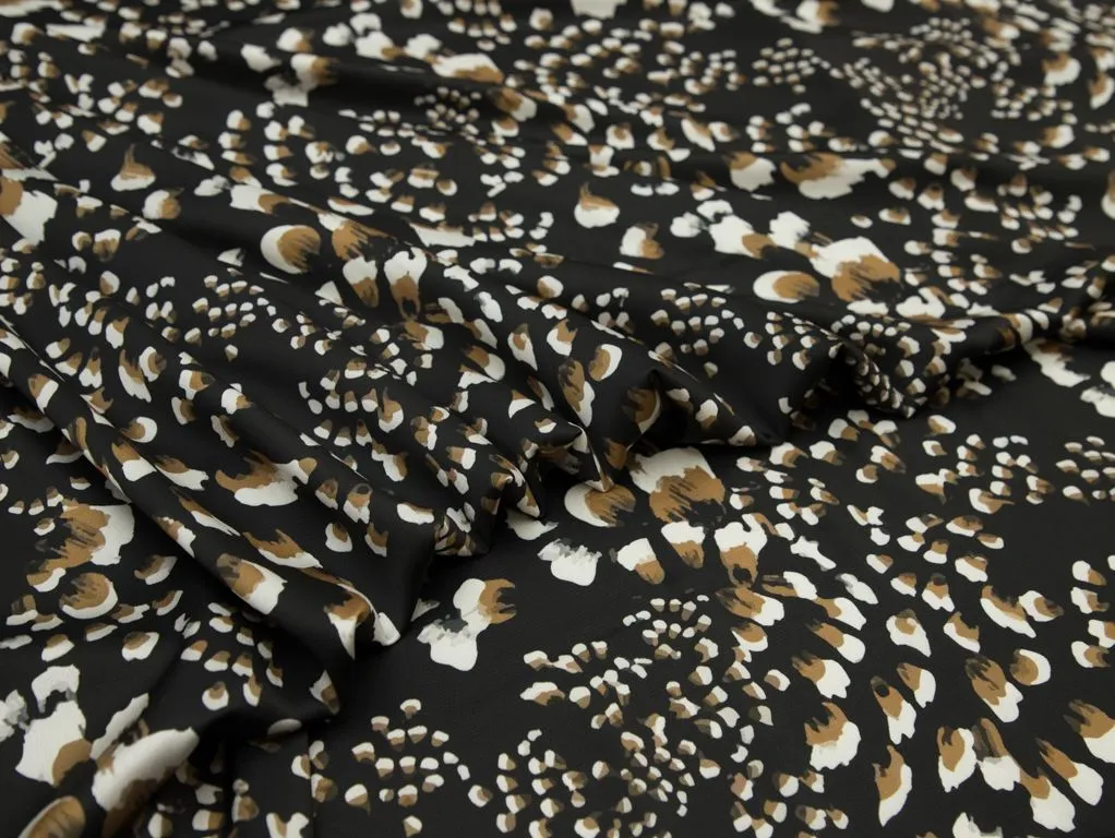Блузочно-плательная ткань с рисунком "абстрактные цветы", цвет черно-коричневый