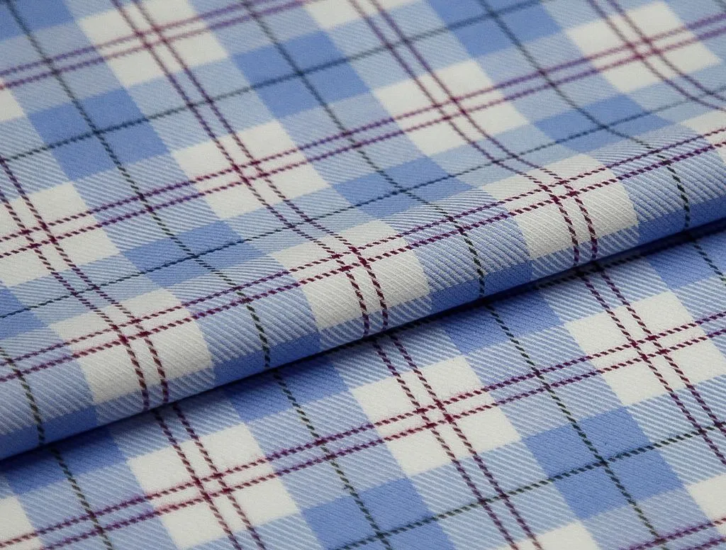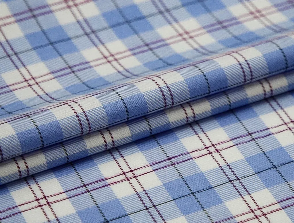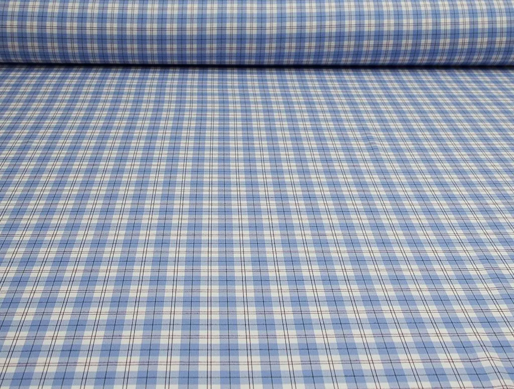 Костюмно-плательная ткань "Бело-голубая клетка"