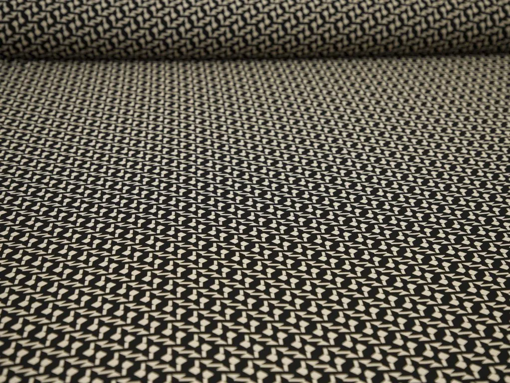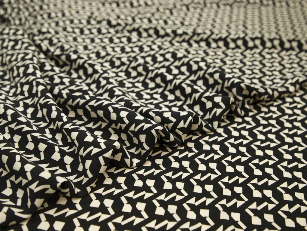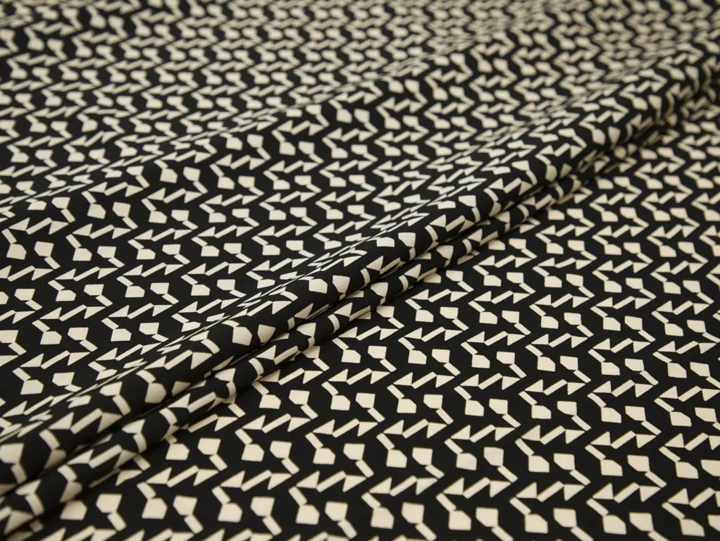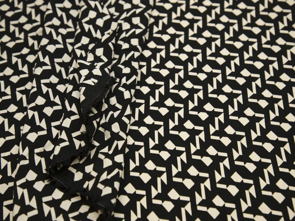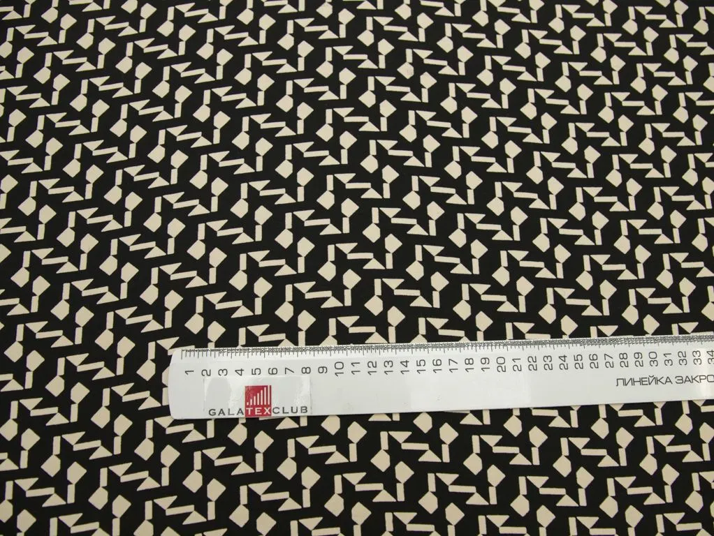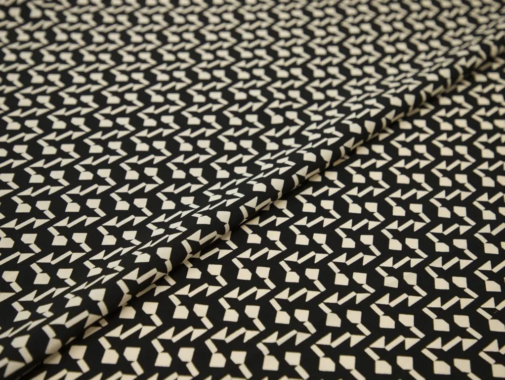 Плательная ткань черного цвета с геометрическим принтом кремового цвета
