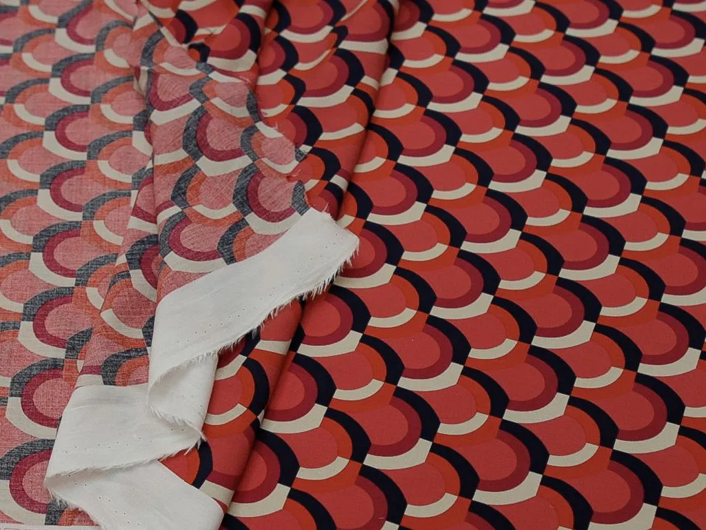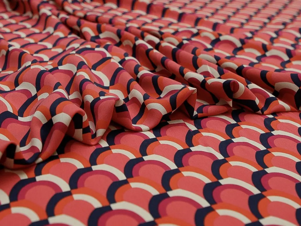 Плательная ткань разноцветный принт c геометрическим рисунком
