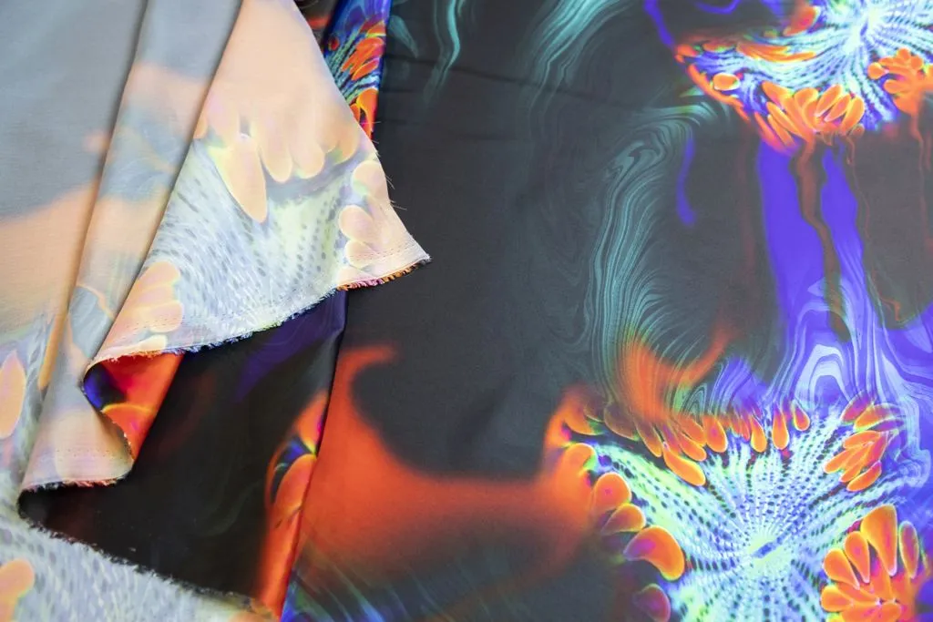 Плательная ткань с экзотическим принтом, мультиклор