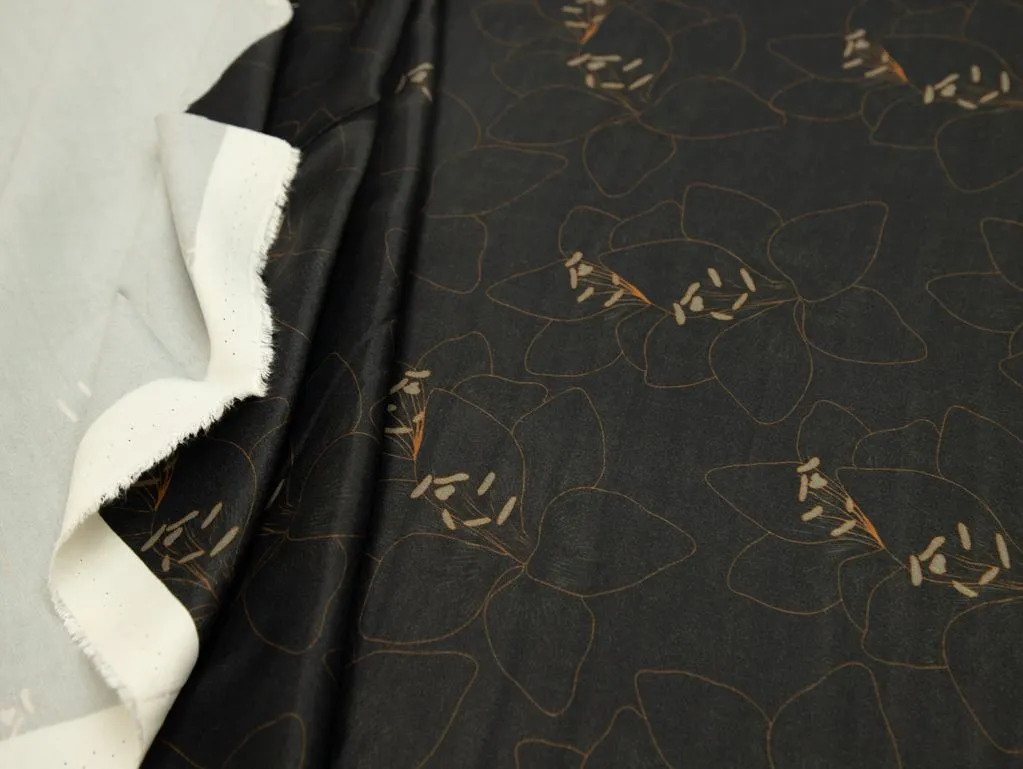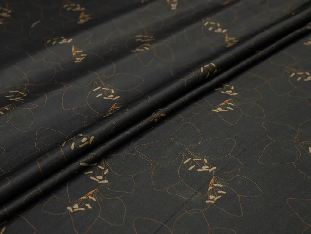 Плательная ткань с тонким цветочным рисунком, цвет коричнево-графитовый цвет