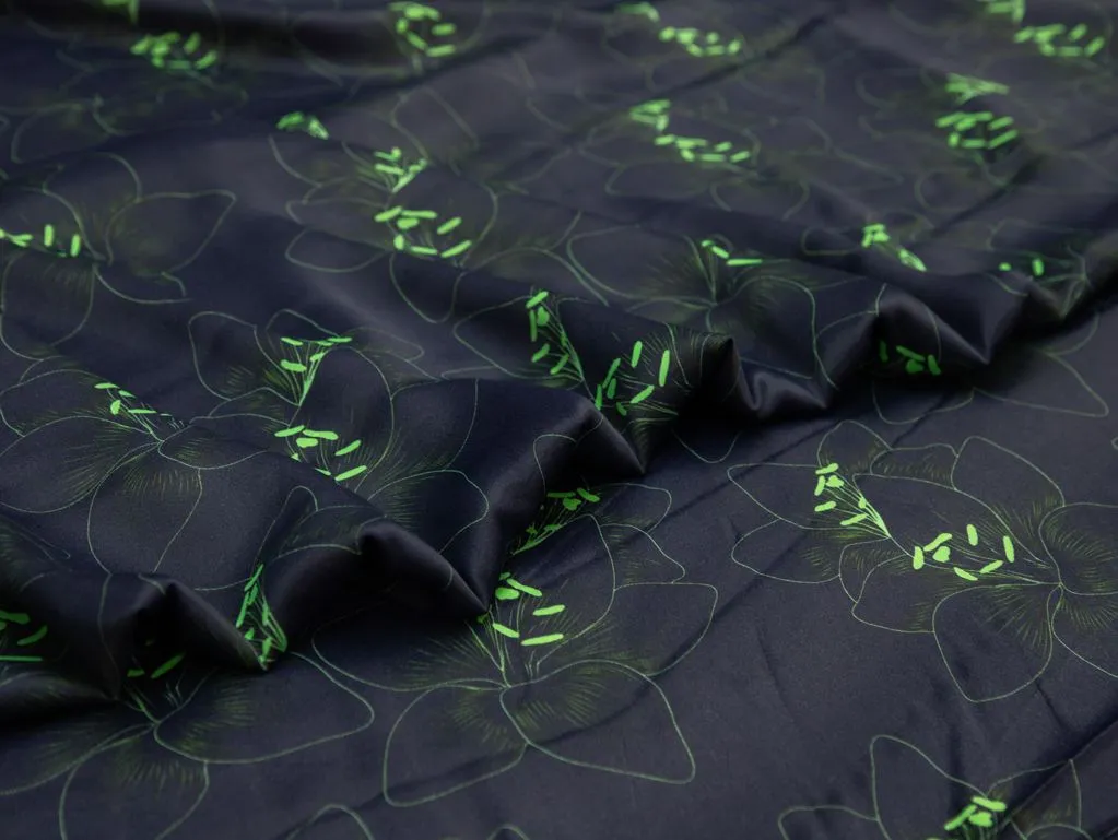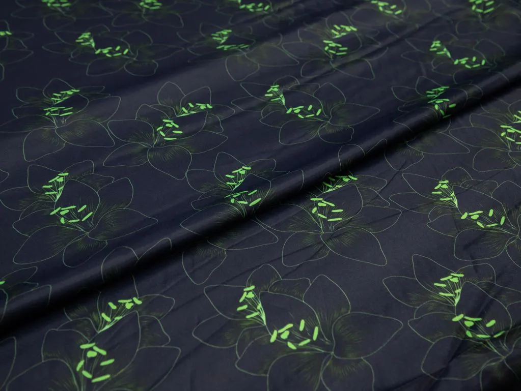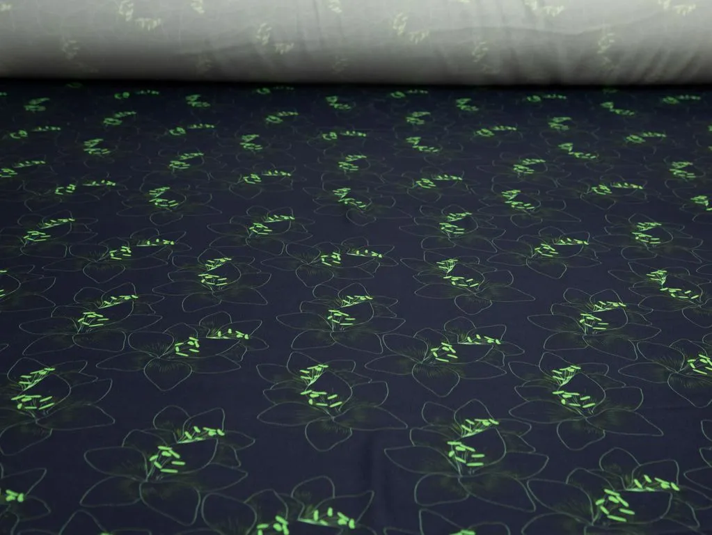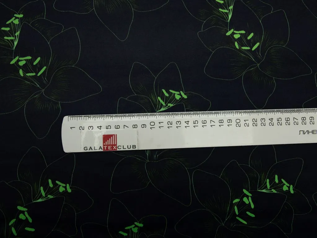 Плательная ткань с тонким цветочным рисунком, цвет зелено-синий