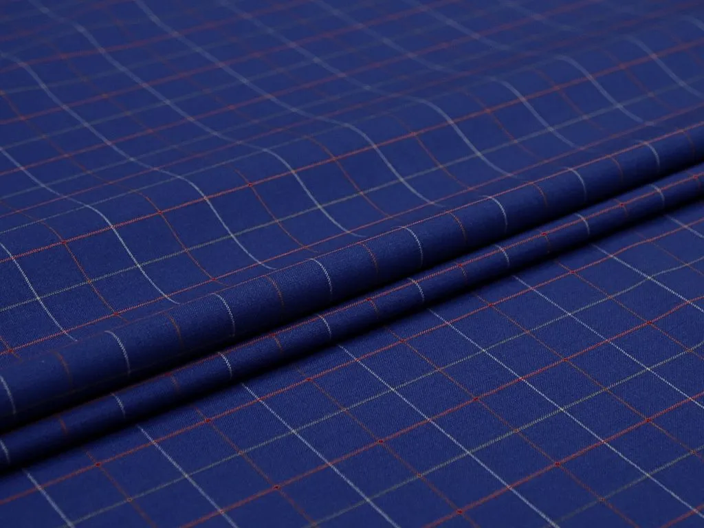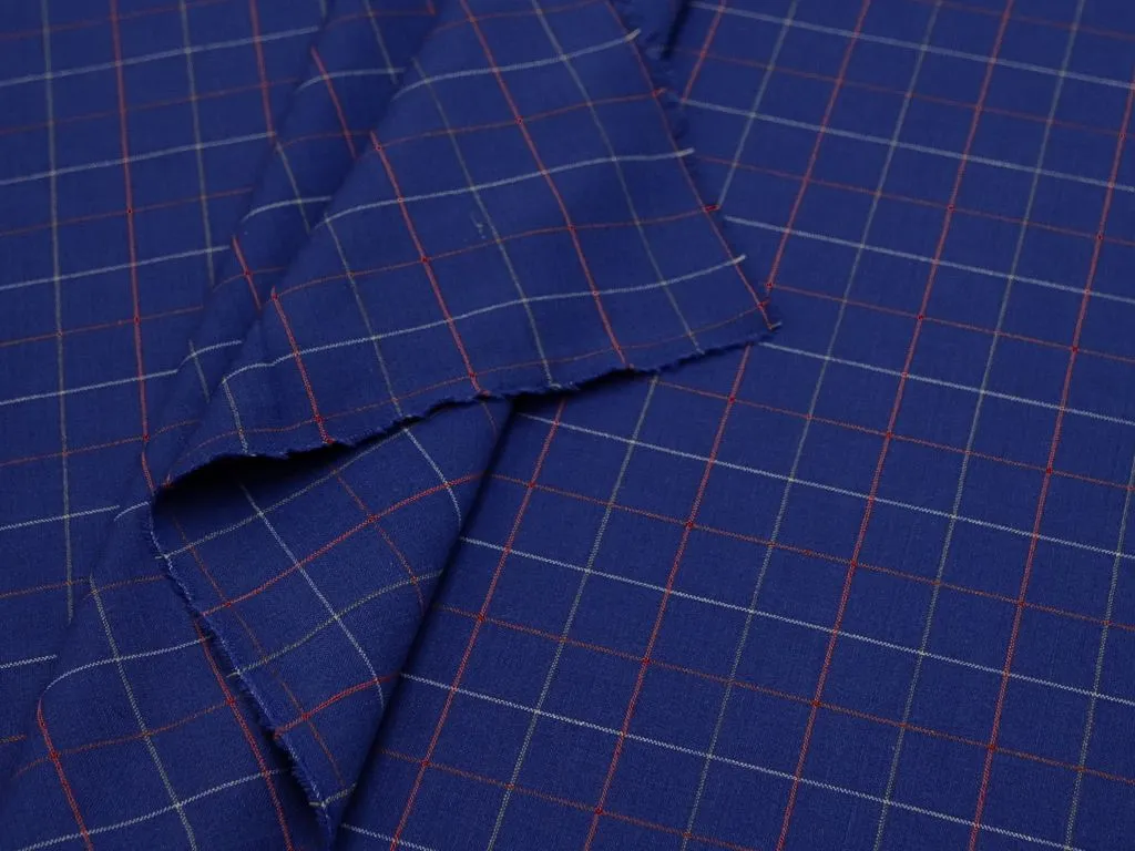 Плательная ткань в клетку, цвет сине-красный