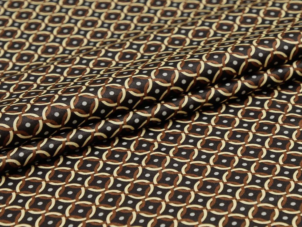 Плательная ткань Emaar, в коричнево-бежевых тонах с мелкими кружочками