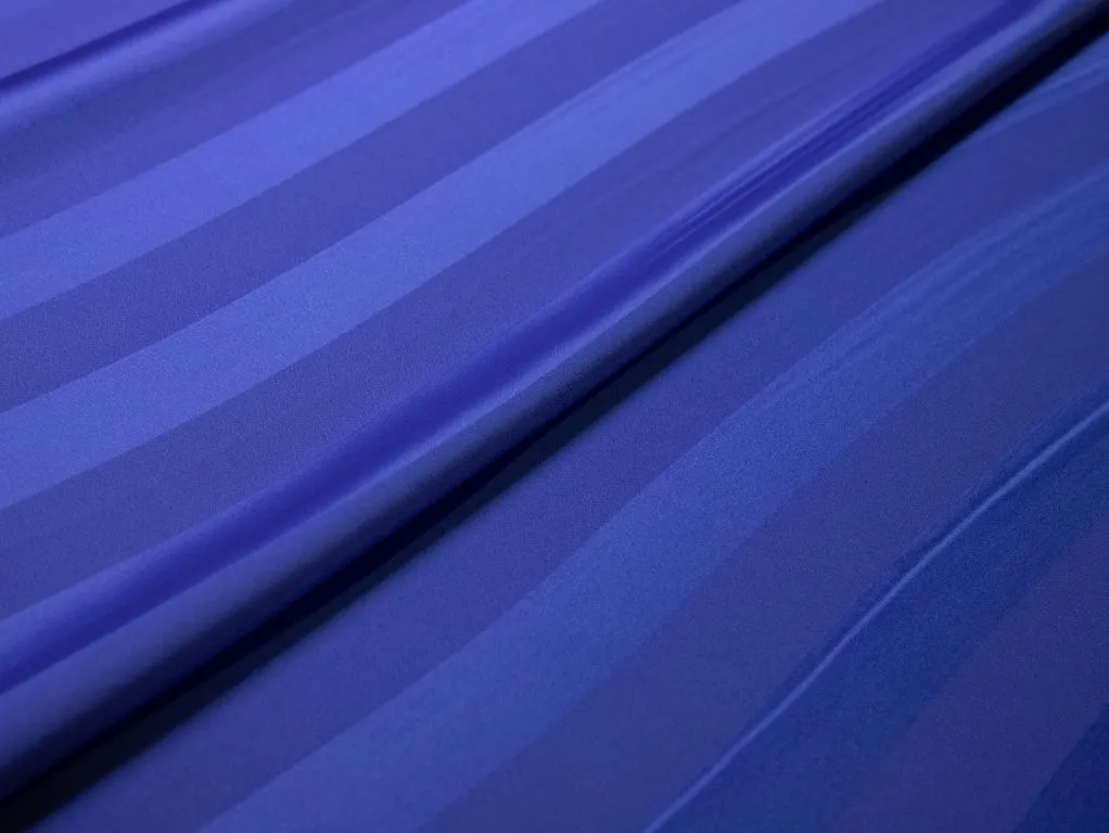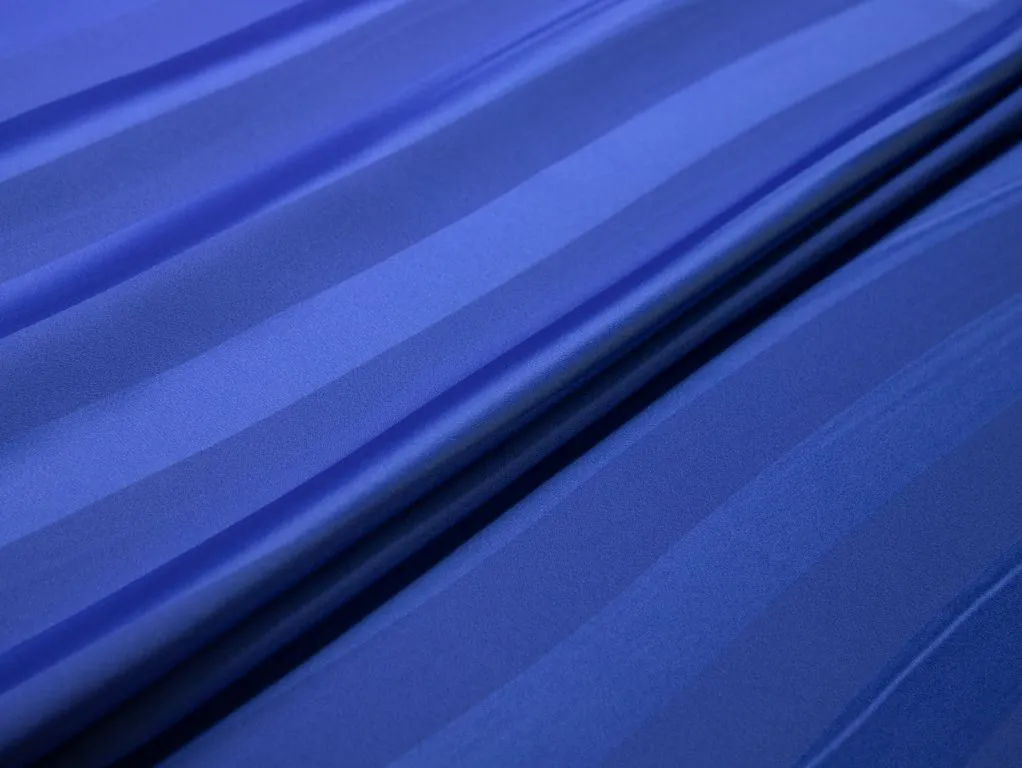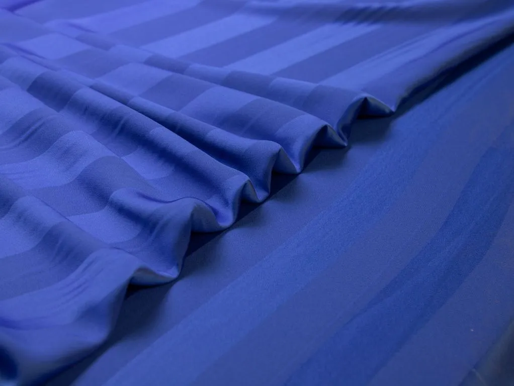Плательная ткань в широкую горизонтальную полоску, цвет васильковый