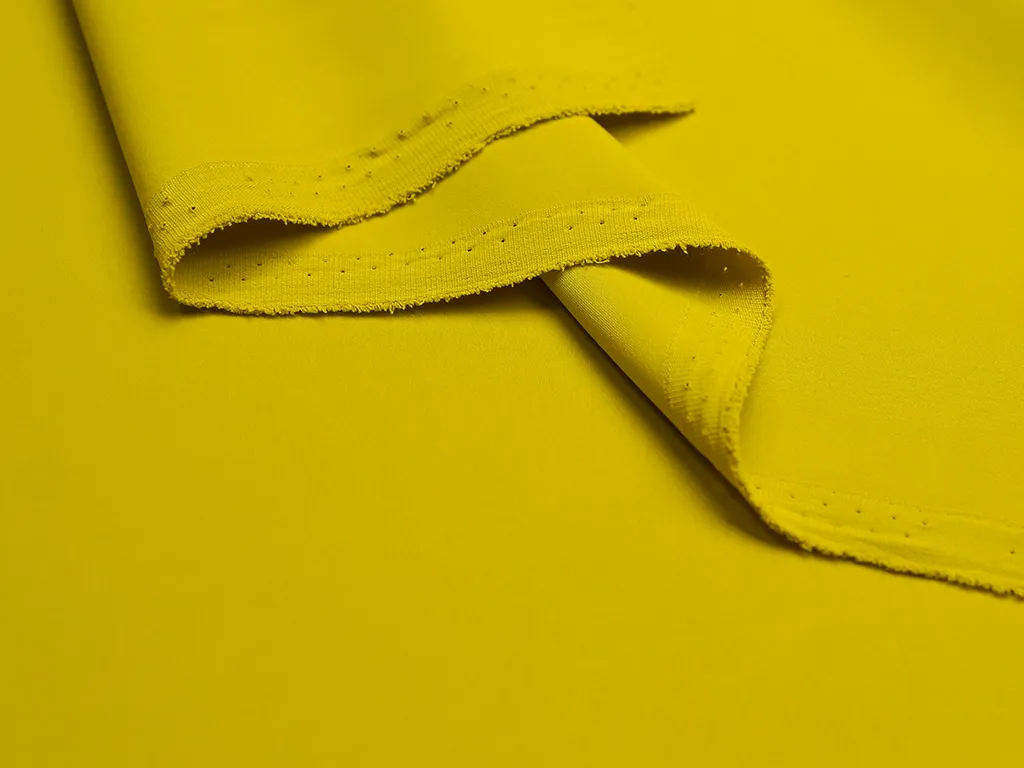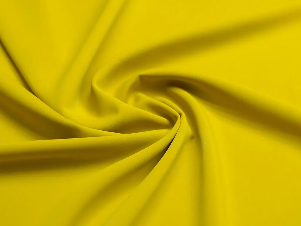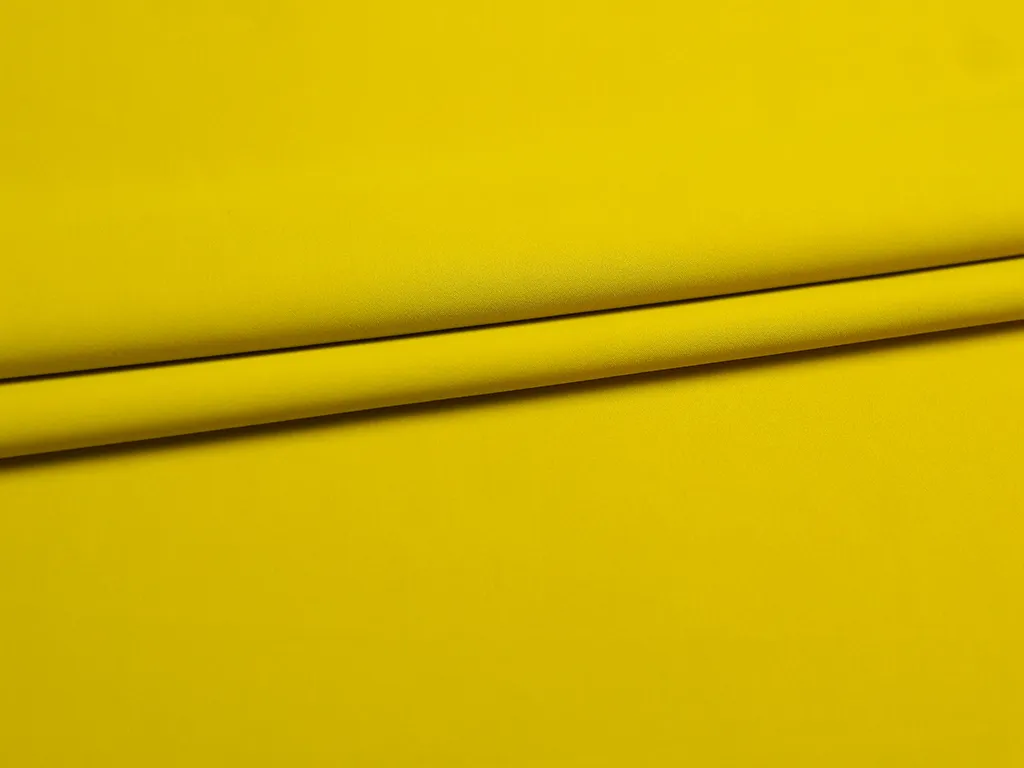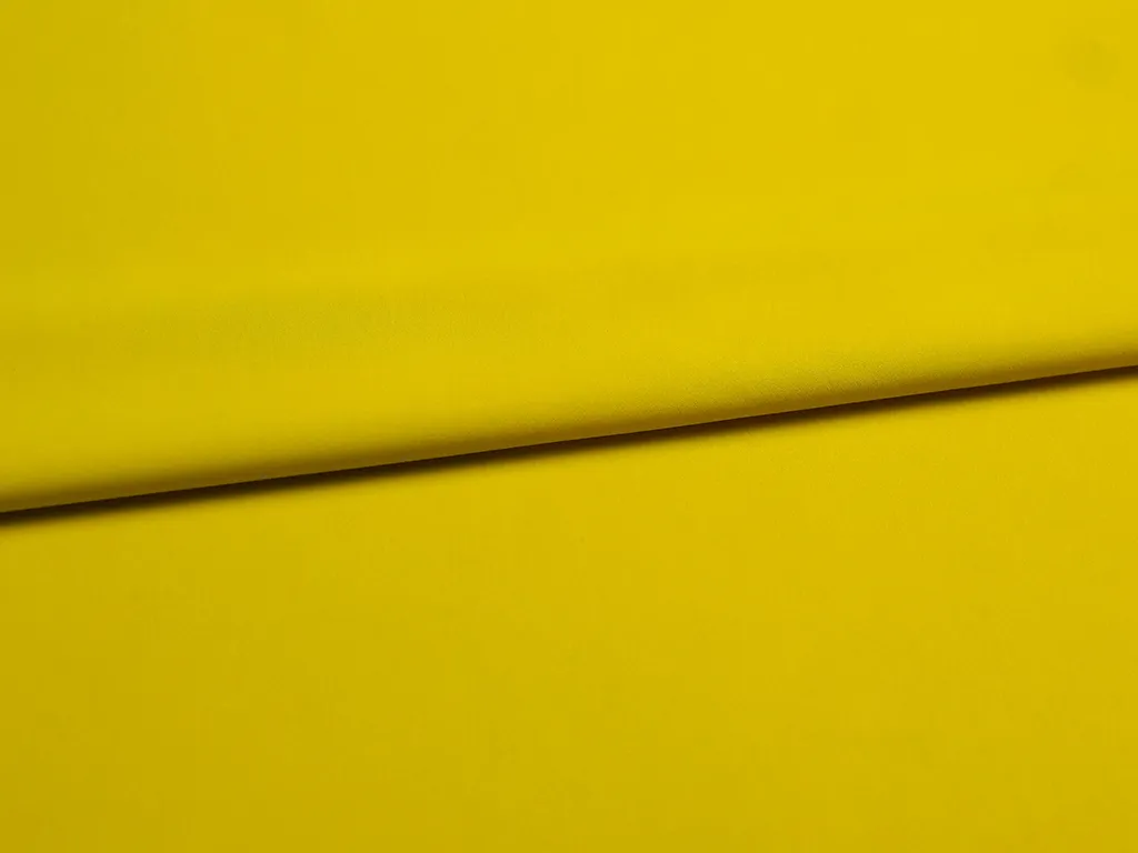 Плательная ткань холодного желтого цвета. Ткань средней плотности, очень пластичная, комфортная, не электризуется и не сухая на ощупь. С лицевой стороны с благородным блеском, а с изнанки - матовая. Подходит для изготовления платьев и юбок.
