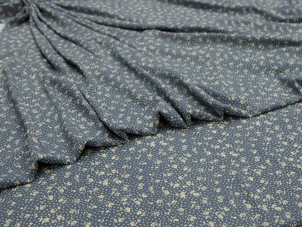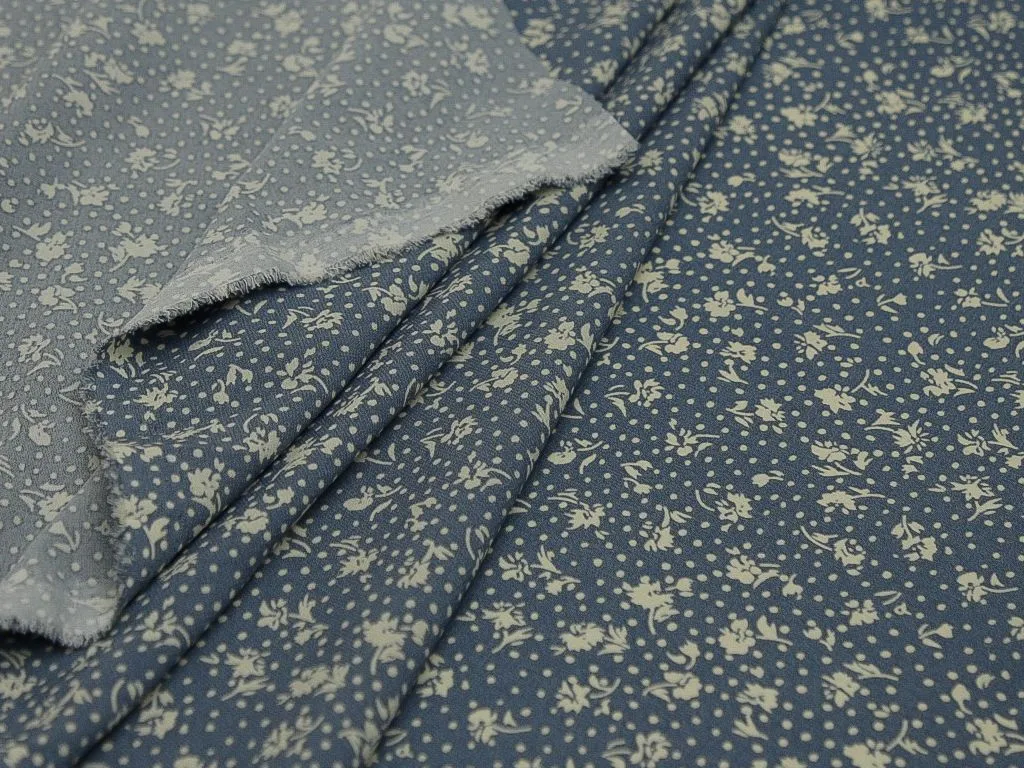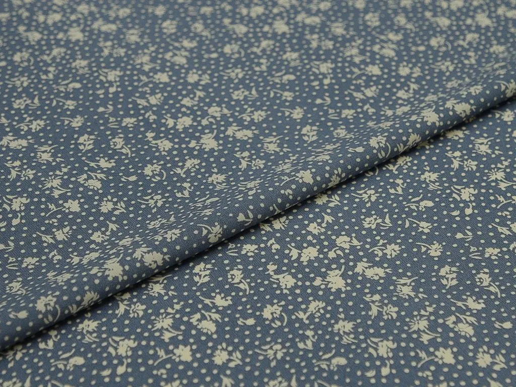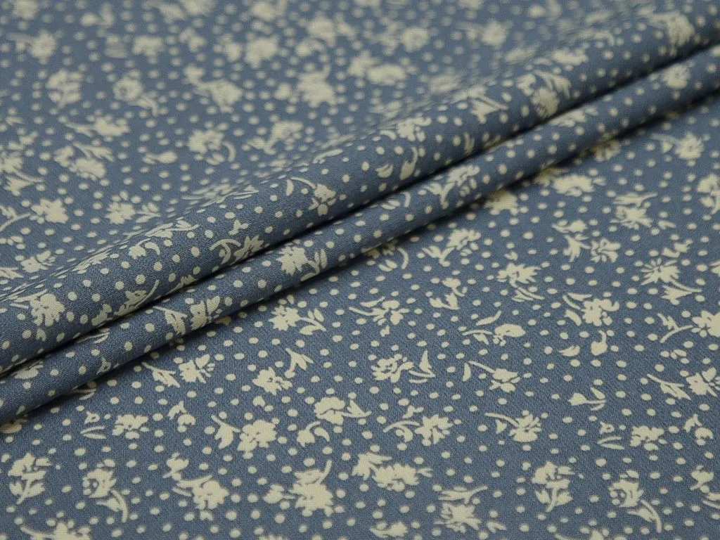 Принтованная плательная ткань, с рисунком "Белые цветочки на синем фоне"