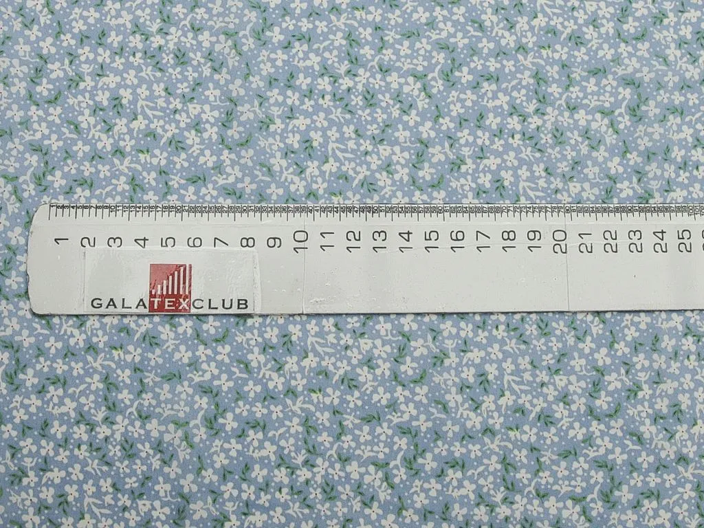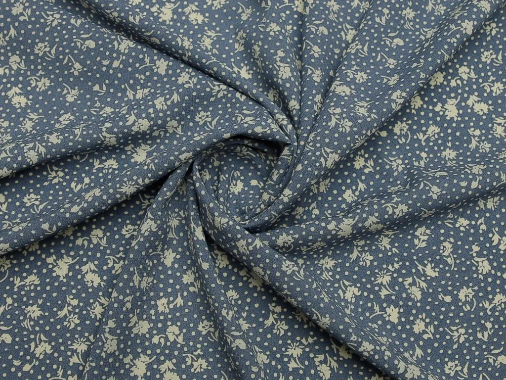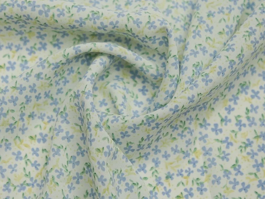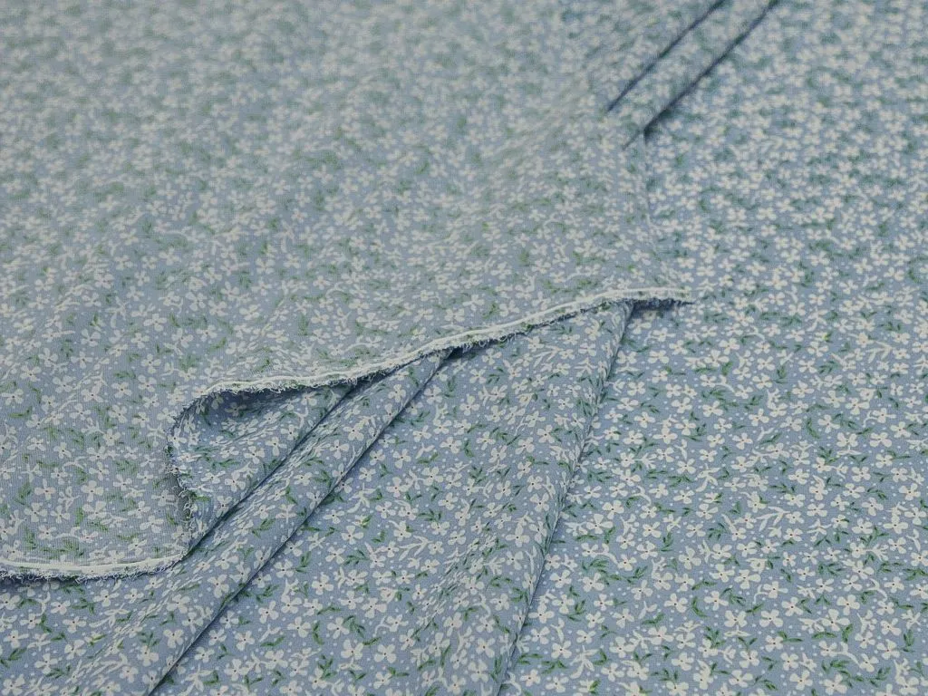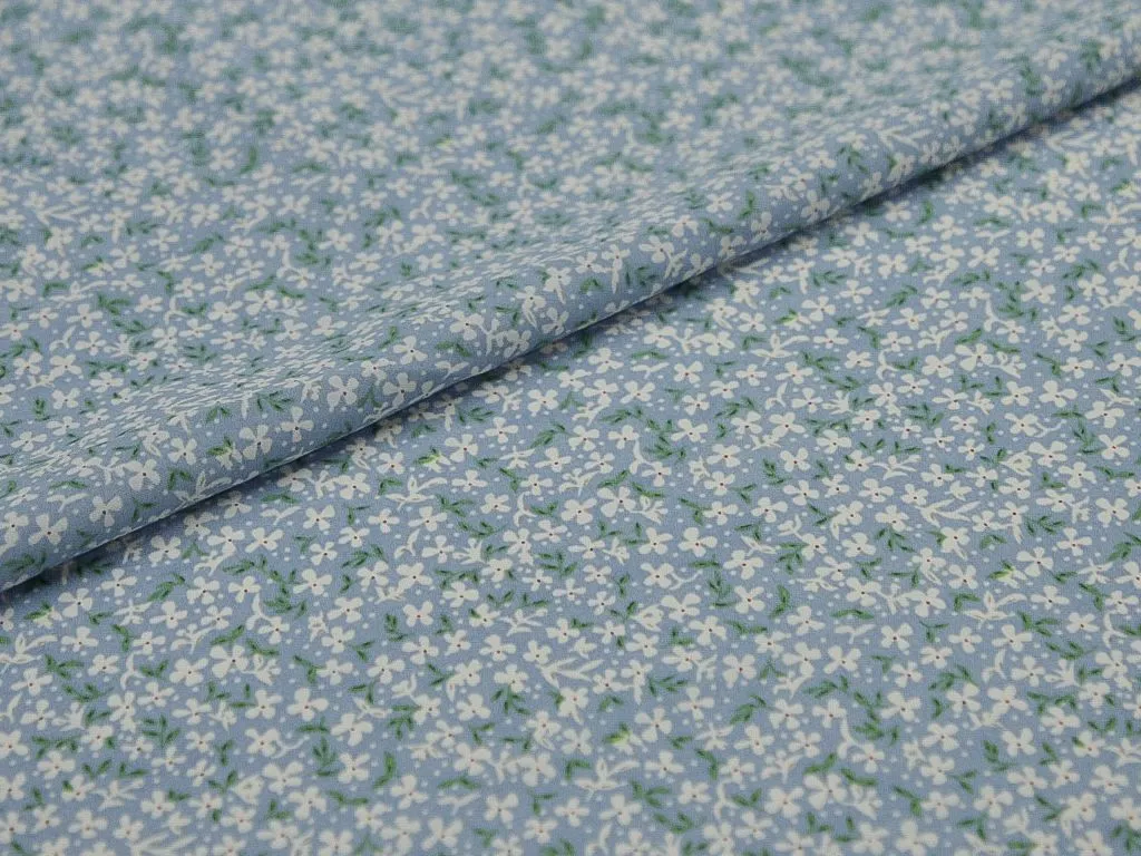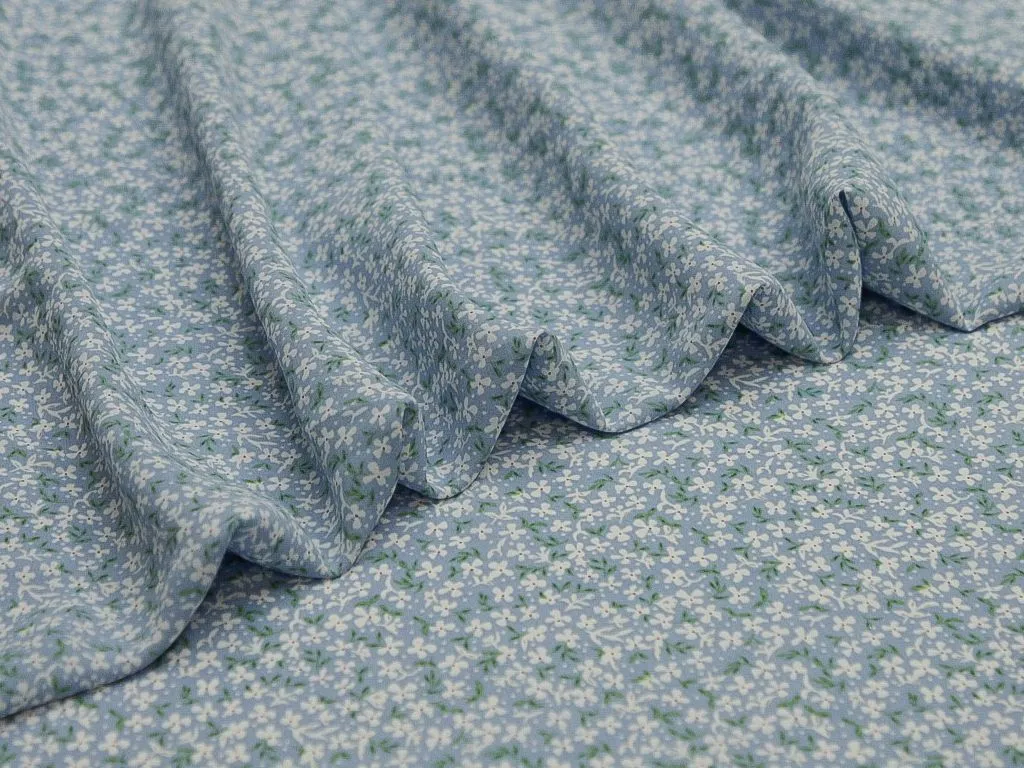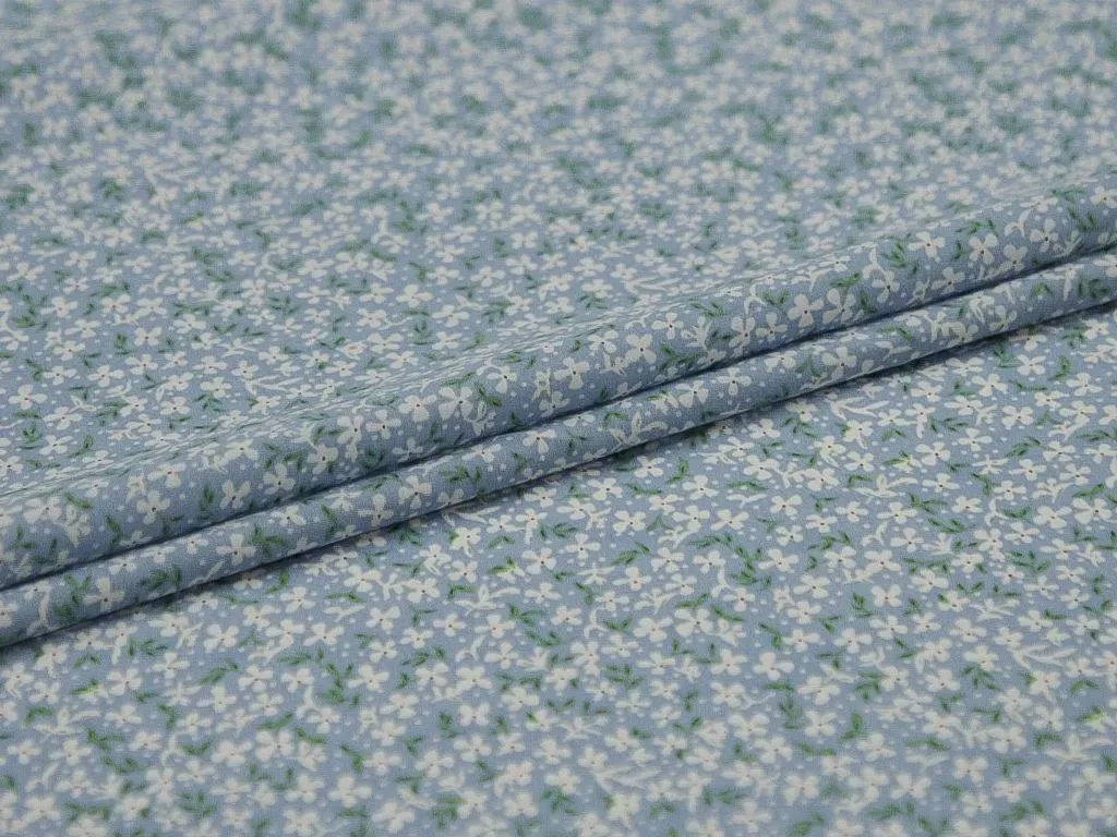 Принтованная плательная ткань, с рисунком "Мелкие разноцветные цветочки на голубом"