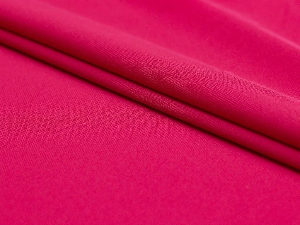 Костюмно-плательная ткань малинового цвета. Средней плотности, пластичная, комфортная, не электризуется, не сухая, матовая, хорошо драпируется. Подходит для изготовления костюмов, платьев, юбок и брюк.