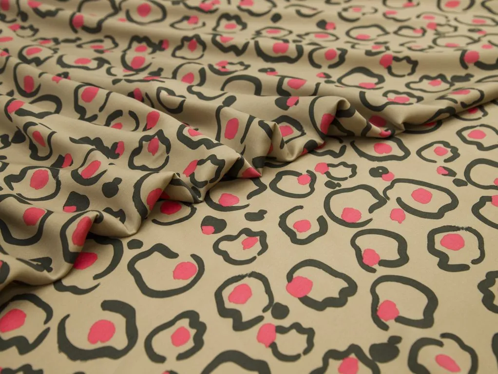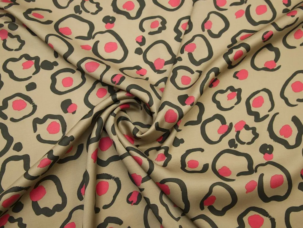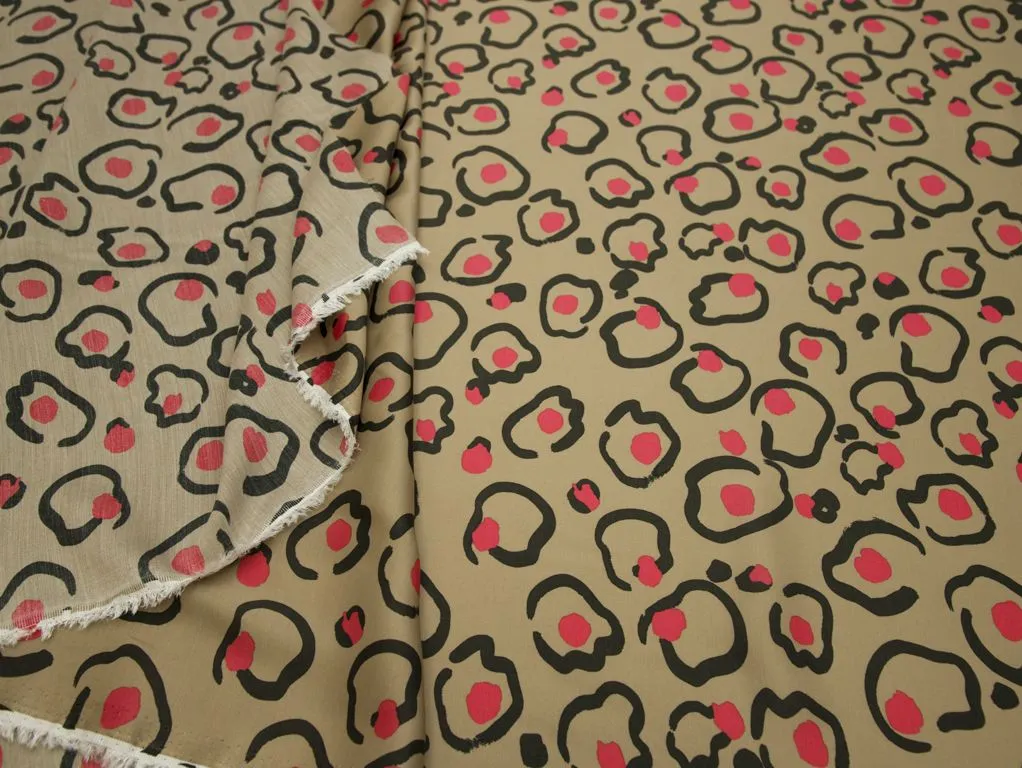 Вискозная плательная принтованная ткань цвета кофе с молоком