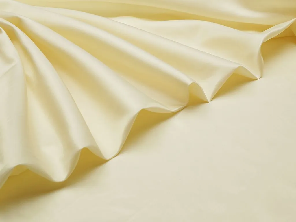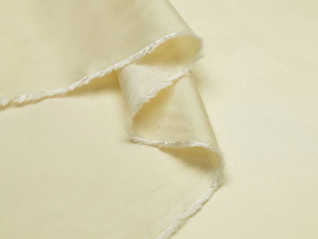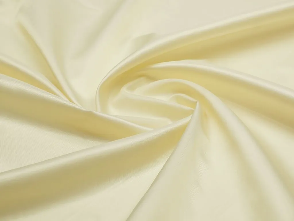 Однотонная подкладочная ткань нежно-кремового цвета, пластичная и приятная на ощупь, не сухая. Подходит для пошива подклада костюмно-плательной группы.