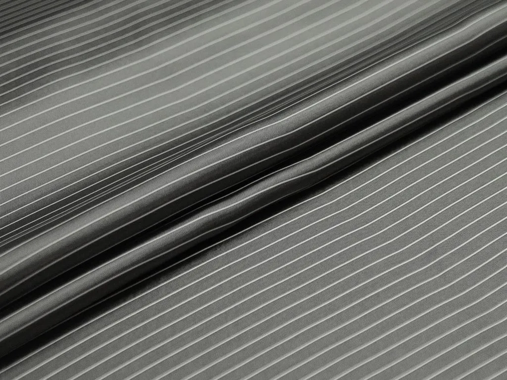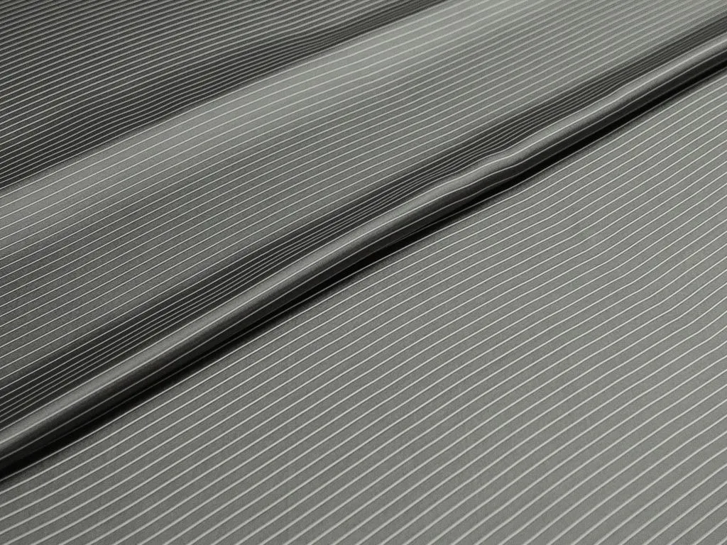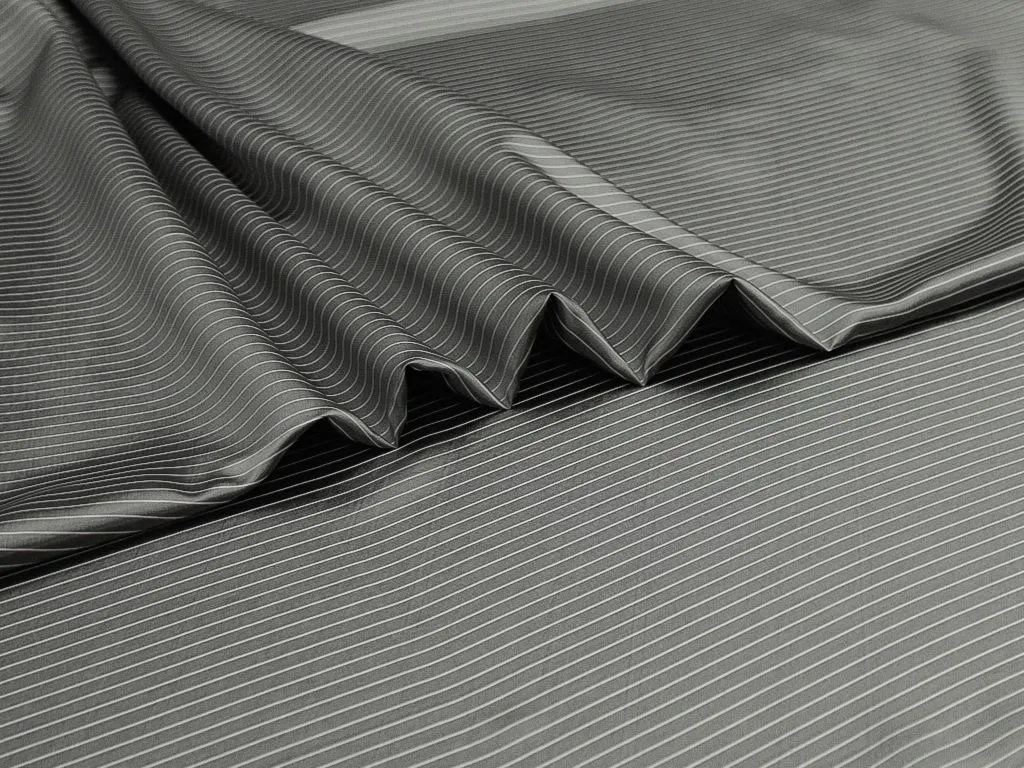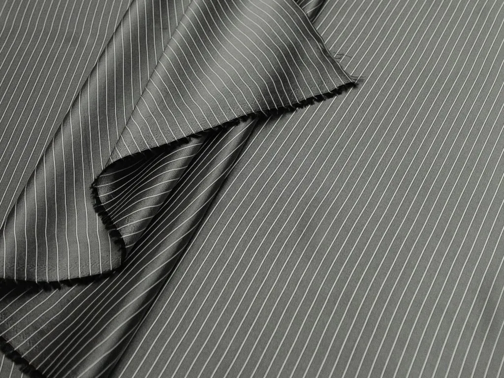 Подкладочная ткань серого цвета, в белую горизонтальную полоску
