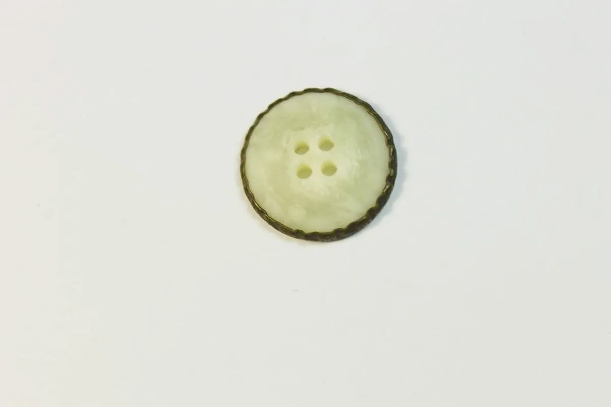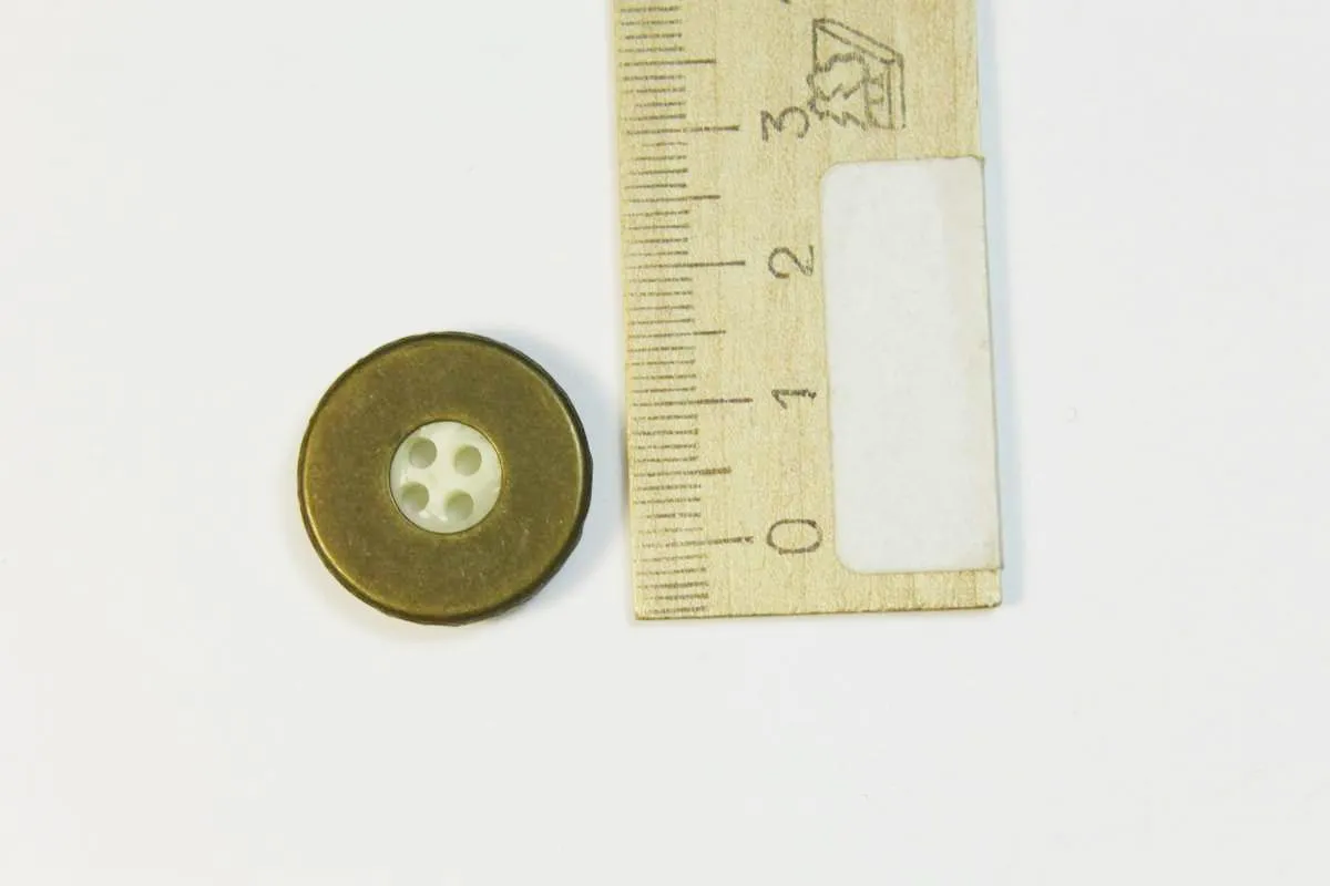 Пуговица, четыре прокола, бронза с пластиком под белый камень, диаметр 21 мм