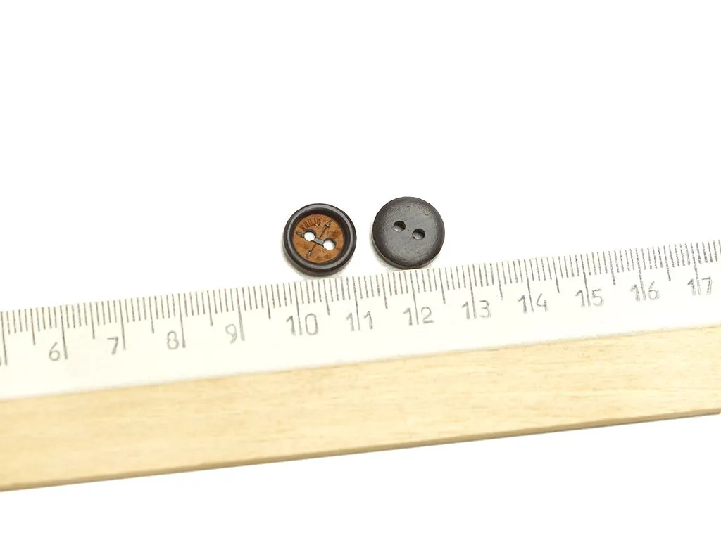 Пуговица деревянная, 2 прокола, коричневого цвета, диаметр 13 мм