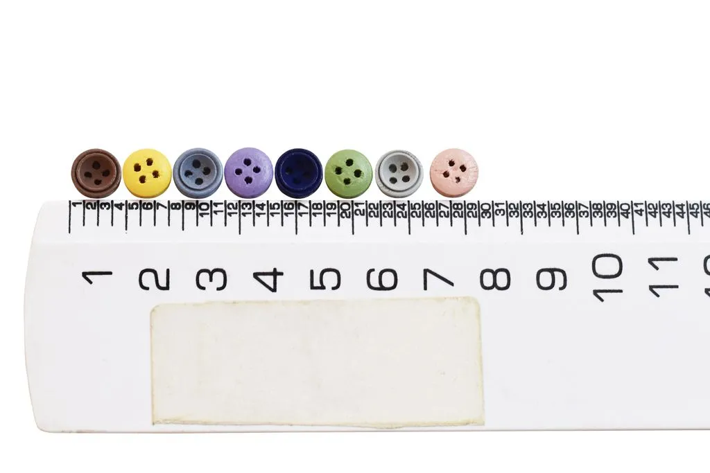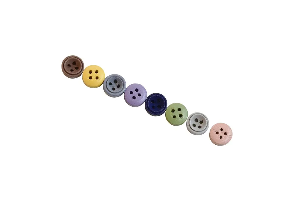 Пуговица деревянная на пришив 4 прокола, разноцветные, диаметр 7 мм